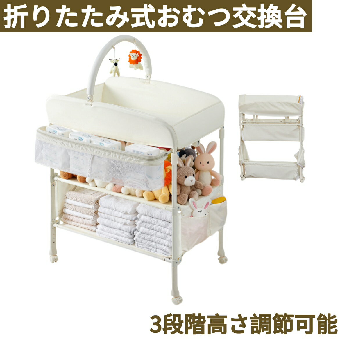 詳細●使う人の身長に合わせて3段階の高さ調節が可能。●立ったままおむつ替えができるので、腰に負担がかかりません。●小物をしまえるポケットやタオルなどを掛けられるハンガーが付属。●下部にも収納ラックがあるので、おむつやおしり拭きのストックを仕舞えます。●使わない時は折りたたんでコンパクトに保管が可能。●ママ一人でも簡単に組み立てていただけます。●シートは取り外せるので、汚れた時もすぐに洗えます。●固定ベルトと滑り止め付きの脚で、赤ちゃんが動いても安心です。●耐荷重50kgで、大きめの赤ちゃんでも使用できます。●目盛り付きで身長測定ができます。●おむつ替えだけでなく、マッサージやお着換えにも使用できます。仕様■対象年齢0歳から■素材鋼、亜麻■サイズ約72×55×98(cm)高さ84・88cmまで調節可■重量約5kg■耐荷重約30kgまで メーカー希望小売価格はメーカーカタログに基づいて掲載しています 不良品についての説明基づいて掲載しています 8,989円 税込 送料別 カードOK イロトリドリ 楽天市場店 ![]() | ||