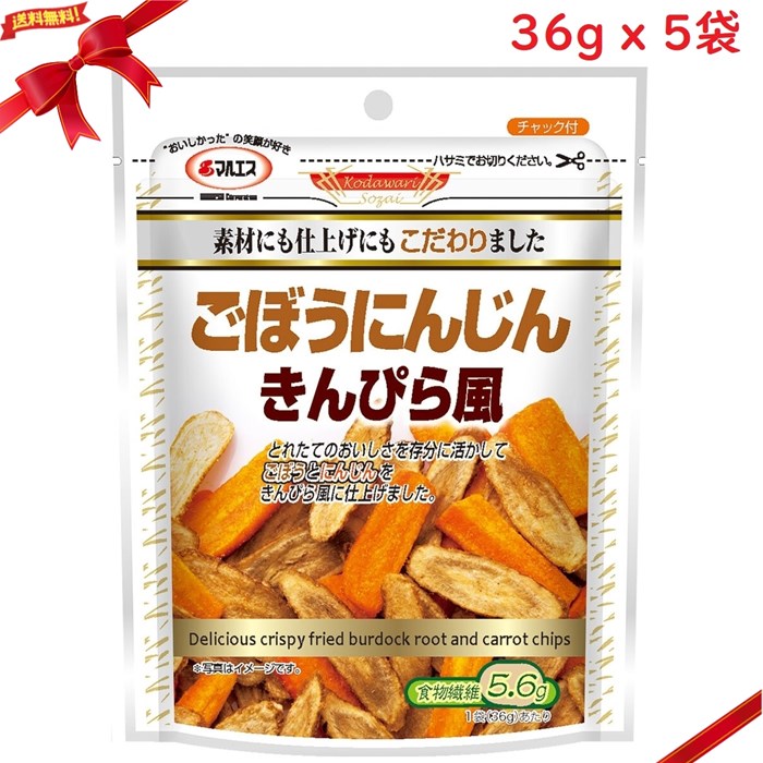 マルエス ごぼうにんじん きんぴら風 スナック 36g x 5袋 Crispy Fried Burdock Root and Carrot Chips 36g x 5 ・36g×5パック ・ベトナム産のニンジンと台湾産のごぼうをバキュームフライしました ・きんぴらごぼうをイメージした味付け ・便利なチャック付き ベトナム産のニンジンと台湾産のごぼうをバキュームフライし、素材のおいしさをそのまま活かした、軽い食感に仕上げました。 きんぴらごぼうをイメージした、甘い醤油の味とピリッと辛い唐辛子の風味を感じる味付け... 2,208円 税込 送料別 カードOK 雑貨通販店ユートピア ![]() | ||
