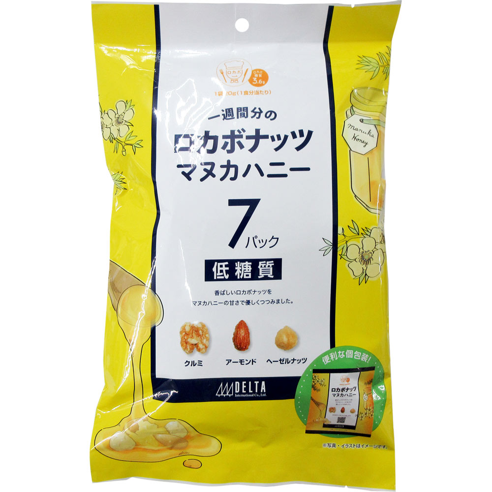 ※写真はイメージです。実際にお届けする商品とパッケージなどが異なる場合がございます。商品の特徴香ばしいナッツをニュージーランド産マヌカハニーの優しい甘さでつつみました。ほんのり甘く香ばしいロカボナッツをお楽しみください。原料・成分等【原材料】クルミ(アメリカ)、ヘーゼルナッツ(トルコ)、アーモンド(アメリカ)、砂糖、水飴、マヌカ蜂蜜(ニュージーランド)、食塩、香料、増粘剤(加工澱粉)、甘味料(スクラロース)、(一部に小麦・アーモンド、クルミを含む)【栄養表示成分】(1袋20g)熱量:128kcal たんぱく質:3.5g 脂質10.8g 炭水化物:4.8g 食塩相当量:0.1g 亜鉛:0.5mg カリウム:99mg カルシウム:25mg 鉄:0.5mg ビタミンE:2.4mg 葉酸:10μg オレイン酸:4.5g用法及び用量【お召し上がり方】一日一袋を目安にお召し上がりください保存方法・消費期限パッケージに記載製造国日本お問合せ先(製造販売元)株式会社デルタインターナショナル東京都品川区北品川4−7−350120−68−1122 広告文責・販売業者株式会社マツモトキヨシ/お問い合わせ先:0120-845-533 1,002円 税込 送料別 カードOK レビュー1件 マツモトキヨシ楽天市場店 ![]() | ||