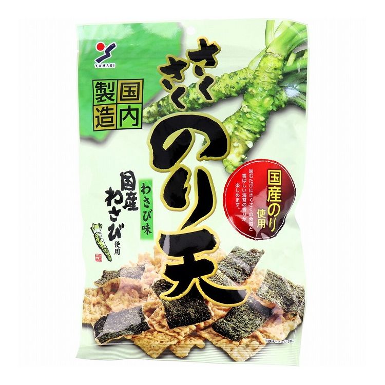【商品詳細】噛むたびにさくさくの食感と、香ばしい海苔の香りが楽しめます。●国産海苔、国産わさび使用。●つんと辛いわさび味にハマる人続出中!大人の美味さを是非一度ご賞味ください。【原材料】小麦粉(国内製造)、植物油脂、海苔、わさびシーズニング(グラニュー糖、食塩、粉末醤油、たん白加水分解物、その他)、でん粉、砂糖、食塩、卵白粉末、あおさ粉、香辛料、たん白加水分解物、還元澱粉分解物/調味料(アミノ酸等)、粉末セルロース、香辛料抽出物、(一部に小麦、卵、大豆を含む)【栄養成分(100gあたり)】エネルギー:588kcaLたんぱく質:6.7g脂質:40.7g炭水化物:48.6g食塩相当量:2.8g【アレルゲン】小麦、卵【保存方法】直射日光、高温多湿を避け、常温で保存してください。注意事項 【注意】・本品製造工場では乳成分、えび、かにを含む製品を製造しております。・本商品に使用している海苔、あおさは、えび、かにが混ざる漁法で採取しております。【取り扱い上の注意】・本品は商品の品質を保つ為、脱酸素剤を封入しておりますが、本剤は食品ではありませんので食べられません。また製品開封後、脱酸素剤が熱くなることがありますのでご注意ください。・賞味期限は、未開封の状態で、表示されている方法で保存したときに品質が保たれる期限です。・開封後は賞味期限に関わらずお早めにお召し上がりください。メーカー名 山栄食品工業株式会社製造国:日本商品区分:食品賞味期限:別途パッケージ記載【送料について】北海道、沖縄、離島は送料を頂きます。 750円 税込 送料別 カードOK リコメン堂生活館 ![]() | ||