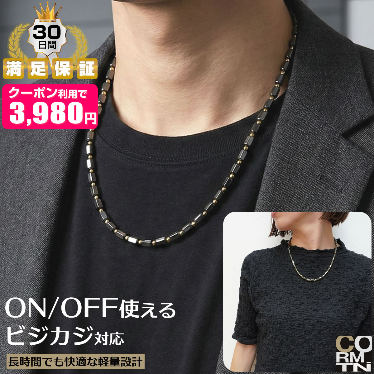ONは潜ませ、OFFで魅せる。 大人のための機能美アクセサリー「CORMTN(コリマテン)」。 ビジネスシーンではシャツの下に忍ばせて、スマートに。 プライベートやジムでは、大人の色気を引き立てるアクセントとして。 「ただの装飾品」では満足できない、すべての方に向けたジェンダーレスな磁気ネックレスです。 【CORMTN ベーシックモデルの特徴】 ■ 重厚感のある輝き、なのに軽い ヘマタイトと磁気パーツを組み合わせた「ブラック×ゴールド」の配色は、高級感... 4,280円 税込 送料込 カードOK レビュー39件 CORMTN磁気ネックレス 公式 ツルコ ![]() | ||