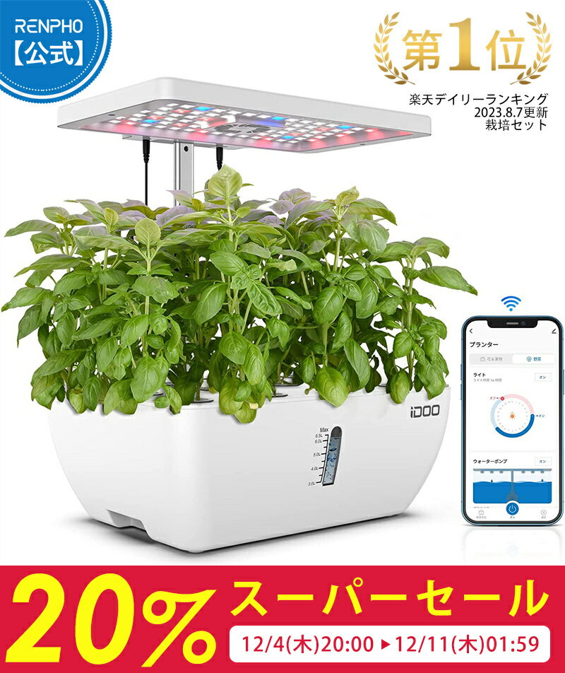 🌟【安心の総合ヘルスケアブランド】 1) 「IDOO」は、総合ヘルスケアブランド「RENPHO」のサブブランドです。 2) アメリカアマゾンのトップセラー、大人気のヘルスケアブランド。 3) 全商品メーカー保証1年、安心の日本人スタッフによるサポート。 🌟【スマート水耕栽培システム】 iDOO水耕栽培はスマート水耕栽培システムを採用しています。初心者や経験が浅くても気軽に野菜を栽培できます。また、外気の汚れや悪天候、害虫などの心配も少なく、1年... 11,679円 税込 送料込 カードOK レビュー73件 レンフォジャパン ![]() | ||