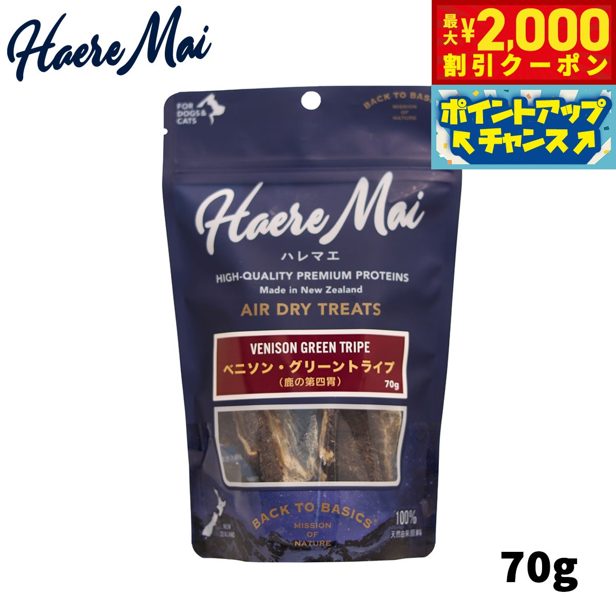 ハレマエ エアドライトリーツは自然放牧で育てた健康で安全なお肉、内臓、骨だけでできた、ニュージーランドでしか作れない、犬と猫にとって本物の自然食です。無漂白の鹿の第四胃に含まれる善玉菌(乳酸菌)を残したまま丸ごとエアドライしました。犬や猫が大好きな匂いと、消化を助ける酵素をたっぷり含んだ栄養価抜群のおやつです。商品名ハレマエ ベニソングリーントライプ 犬用おやつ 猫用おやつ 無添加 デンタルケアブランドHaere Mai原材料ベニソングリーントライプ(第四胃)カロリー約425kcal/100g原産国ニュージーランド 保障分析値:たんぱく質 63.0%以上、脂質 26.0%以上、粗繊維 3.0% 以下、灰分 3.0% 以下、水分 6.0% 以下与え方:おやつまたはトレーニングのご褒美として与えてください。与える時は、そばで適した管理をして、歯が弱い場合はご使用をお控えください。使用中に端がとがったり、喉に詰める危険性がある場合は破棄してください。メーカー名レッドハート株式会社ハレマエ ベニソングリーントライプ 犬用おやつ 猫用おやつ 無添加 デンタルケアハレマエ エアドライトリーツは自然放牧で育てた健康で安全なお肉、内臓、骨だけでできた、ニュージーランドでしか作れない、犬と猫にとって本物の自然食です。無漂白の鹿の第四胃に含まれる善玉菌(乳酸菌)を残したまま丸ごとエアドライしました。犬や猫が大好きな匂いと、消化を助ける酵素をたっぷり含んだ栄養価抜群のおやつです。 1,815円 税込 送料別 カードOK ドッグニール ![]() | ||