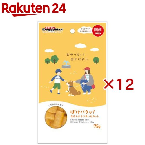 お店TOP>ペット用品>犬用食品(フード・おやつ)>犬用おやつ(間食・スナック)>セミソフトおやつ(犬用)>ぽけパクッ! なめらかさつまいもカット (75g×12セット)【ぽけパクッ! なめらかさつまいもカットの商品詳細】●あげやすく、パクっと食べやすいお出かけに持っていきたいおやつ。●サツマイモのやさしい甘みがおいしい一口スナック。●サツマイモの自然な香りがおいしそうなひとくちスナック。●薄切りの小ぶりなサイズのソフトスナック。●仲間とワイワイ、休憩のおやつ、通院などのごほうび、お出かけのお供に!【用法 用量】1日の目安給与量/幼犬・超小型成犬(5kg以下):〜15個、小型成犬(5〜11kg):15〜30個、中型成犬(11〜23kg):30〜45個、大型成犬(23〜40kg):45〜60個【召し上がり方】目安給与量を参考に1日1〜数回に分け、おやつとして与えてください。【品名・名称】間食【ぽけパクッ! なめらかさつまいもカットの原材料】小麦粉、鶏ササミ、さつまいも、ショートニング、ソルビトール、プロピレングリコール、保存料(ソルビン酸カリウム)、ミネラル類(ナトリウム)、pH調整剤、膨張剤、酸化防止剤(エリソルビン酸ナトリウム)、香料、着色料(黄4、黄5)【栄養成分】粗たん白質:9%以上、粗脂肪:2%以上、粗繊維:2%以下、粗灰分:3.5%以下、水分:35%以下【保存方法】★開封後要冷蔵・お買い上げ後は直射日光・高温多湿の場所を避けて保存してください。・開封後は密封の上冷蔵し、賞味期限に関わらず早めに与えてください。【原産国】日本【ブランド】ドギーマン(Doggy Man)【発売元、製造元、輸入元又は販売元】ドギーマンハヤシこちらの商品は、ペット用の商品です。※説明文は単品の内容です。リニューアルに伴い、パッケージ・内容等予告なく変更する場合がございます。予めご了承ください。・単品JAN:4976555828832ドギーマンハヤシ537-0002 大阪府大阪市東成区深江南1-16-140120-086-192広告文責:楽天グループ株式会社電話:050-5577-5043[犬用品/ブランド:ドギーマン(Doggy Man)/] 2,349円 税込 送料別 カードOK 楽天24 ![]() | ||