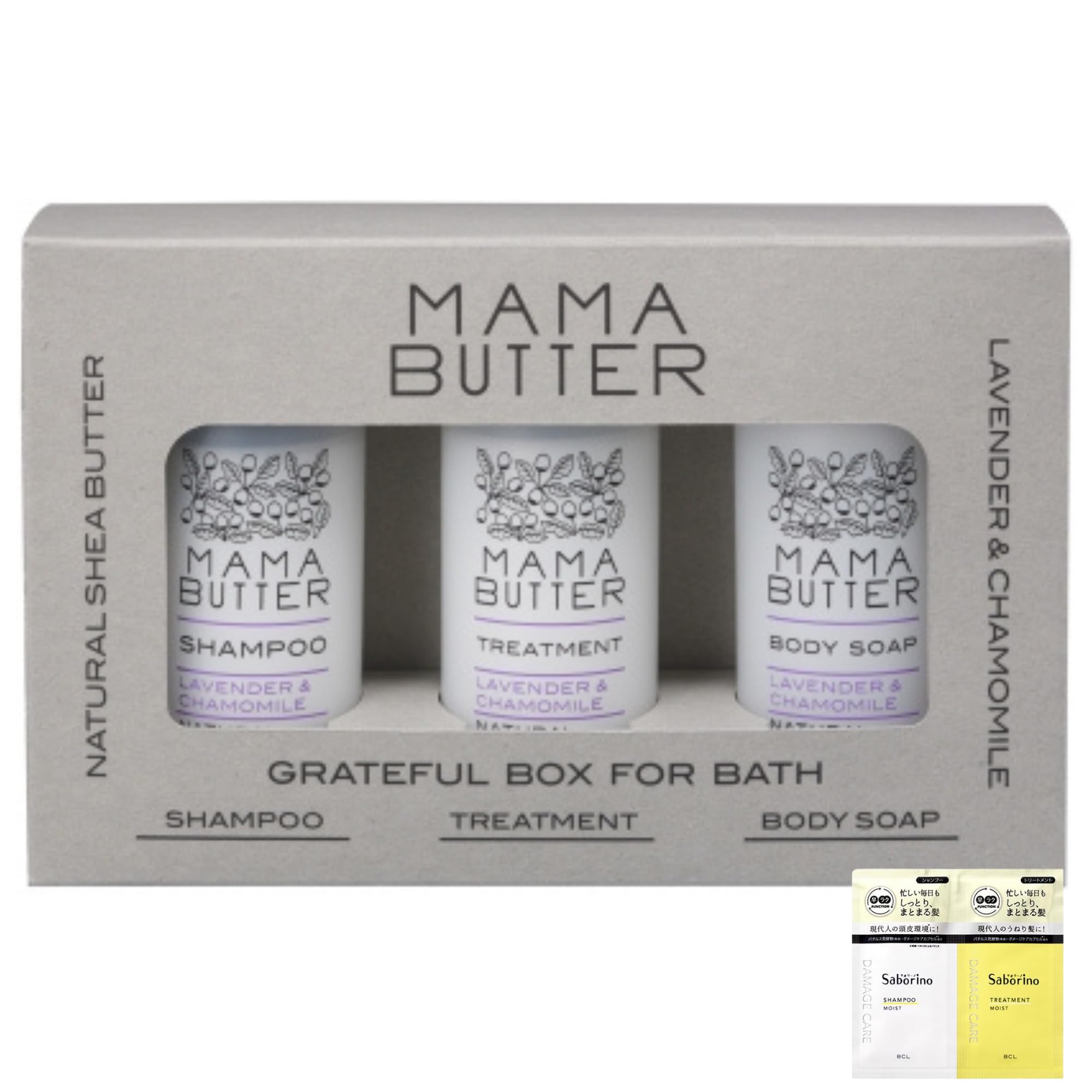 商品情報商品の説明商品の説明 天然の保湿成分シアバターを配合したナチュラルコスメ「ママバター」 クリスマスシーズンやギフトにぴったりの「ママバター グレイトフルボックス フォーバス」 人気のバスアイテム、シャンプー/トリートメント/ボディソープのミニボトルがセットに! シアバター由来の洗浄成分、天然由来保湿成分・シアバター配合で、ボディソープはラベンダー&カモミールの香り付き。 【不使用成分】×石油系界面活性剤 ×シリコン ×合成香料 ×合成着色料 ×鉱物油 ×パラベン ■ママバター シャンプー 天然保湿成分・シアバター由来の洗浄成分と、アミノ酸系の洗浄成分を使用。髪や頭皮の負担をかけず、髪を補修しながらしっとりやさしく洗い上げるシャンプー。 心地良くリラックスできる、天然ラベンダー&カモミールの香り。 ■ママバター トリートメント 天然保湿成分・シアバター3%配合。紫外線や乾燥によるダメージから頭皮や髪のキューティクルを守るトリートメント。 心地良くリラックスできる、天然ラベンダー&カモミールの香り。 ■ママバター ボディソープ 天然保湿成分・シアバター由来の洗浄成分のなめらかな泡がやさしく汚れを落とします。泡切れも良く、すっきりした洗い上がりでお風呂上りもつっぱらず、潤いを持続。 安全警告 お肌に合わない場合、ご使用をおやめください。主な仕様 シャンプー/トリートメント/ボディソープ 各50ml 3点セット 1,523円 税込 送料込 カードOK MAHY ![]() |