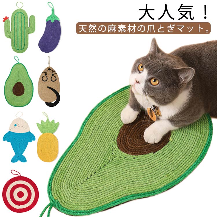 大人気!天然の麻素材の爪とぎマット。爪のひっかりがよいので、ストレス解消にピッタリ。裏面はEVA素材を使用することで滑りにくい、床に置いても爪とぎをすることができます。ひも付きで壁などにも掛けられます。 サイズサボテン アボカド 鯨 レッド丸形 鶏手羽元 パイナップル 天使 カニ オレンジ ナス キノコ ネズミ 猫ちゃんサイズについての説明サボテン:30x40cm アボカド:28x53cm 鯨:32x45cm レッド丸形:30x35cm 鶏手羽元:22x42cm パイナップル:23x42cm 天使:43x46cm カニ:32x31cm オレンジ:30x36cm ナス:17x52cm キノコ:27.5x49cm ネズミ:25x54cm 猫ちゃん:25x54cm素材麻 EVA色タイプ1 タイプ2 タイプ3 タイプ4 タイプ5 タイプ6 タイプ7 タイプ8 タイプ9 タイプ10 タイプ11 タイプ12 タイプ13 タイプ14 タイプ15備考 ●サイズ詳細等の測り方はスタッフ間で統一、徹底はしておりますが、実寸は商品によって若干の誤差(1cm〜3cm )がある場合がございますので、予めご了承ください。●製造ロットにより、細部形状の違いや、同色でも色味に多少の誤差が生じます。●パッケージは改良のため予告なく仕様を変更する場合があります。▼商品の色は、撮影時の光や、お客様のモニターの色具合などにより、実際の商品と異なる場合がございます。あらかじめ、ご了承ください。▼生地の特性上、やや匂いが強く感じられるものもございます。数日のご使用や陰干しなどで気になる匂いはほとんど感じられなくなります。▼同じ商品でも生産時期により形やサイズ、カラーに多少の誤差が生じる場合もございます。▼他店舗でも在庫を共有して販売をしている為、受注後欠品となる場合もございます。予め、ご了承お願い申し上げます。▼出荷前に全て検品を行っておりますが、万が一商品に不具合があった場合は、お問い合わせフォームまたはメールよりご連絡頂けます様お願い申し上げます。速やかに対応致しますのでご安心ください。 2,460円 税込 送料込 カードOK キンキ ![]() | ||