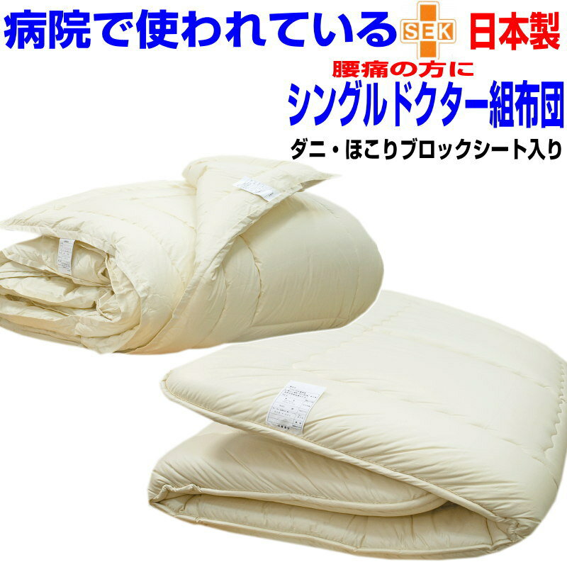 一般の抗菌掛け敷き布団セット シングルとちょっと違うワンランク上の制菌オールシーズン掛け組布団♪ ドクターEs-O多層式敷布団&オールシーズン掛け布団は、 従来の抗菌加工の布団より さらに『病院採用高性能制菌繊維を使用』 高性能制菌機能となりました。 病院など医療機関などで広く使われいる高性能制菌繊維で 家庭で使えるように寝具技能士がでお仕立て企画しました。 商品についての詳細はこちらをクリック 病院採用 ほこりが出にくい高性能制菌中わた・清潔&安心 『アレルギーの方にお勧めの丸洗いOKの多層式敷き&掛け布団』 新企画の当店オリジナルの抗菌 掛け敷き布団セット シングルです (^^)v ハウスダスト、ダニ防止(防ダニ)、花粉症対策に最適です。 【制菌ドクターEs-O 布団の特 長】 ●抗菌からワンランク上のバージョンUPした 病院で使われている制菌を使用 ●病院で使われている掛け敷き布団セット シングルを 当社寝具技能士が家庭用に改善、 制菌で安全・安心なお布団です。 科学が生んだ清潔さを是非実感してください。 ●『制菌ドクターEs-O』製造工程は一般寝具とは違い、 病院用寝具の製造工場で生産。 わたホコリが少なく、軽くて、安全・衛生的な特徴を備えています。 高密度生地使用でさらにダニ防止(防ダニ)効果UP! 綿100%生地を使用しているため、 アトピー、アレルギーの方にもお勧めです。 ●ダニ・ほこりをブロックする不織布シートを布団内部に装着し、 清潔で快適な眠りをお届けします。 ●布団のにおいが、気になる方 細菌やカビ類が原因。 細菌の増殖を防ぎ、悪臭の発生を防止、 清潔で快適な眠りをお届けします。 ●布団が軽くて、柔らかすぎず硬すぎずちょうどよい寝心地 ●もちろん、日本製 市販のカバーでご使用可、ベッドでも使えます。 ●他に手に入らない寝具です。是非こちらでお求めください。 病院採用制菌仕様掛け敷き布団セット シングル 極上手仕上げ!気持ちいい〜 こんな機能で暖かさも抜群! ベットにも使えます。マットレスは不要です。 かたすぎずやわらかすぎず、ちょうどよい硬さ。 へたりを少なくするため、ポリエステル綿で圧縮、 硬質の多層式敷き布団に仕上げています。 春・夏・秋・冬使える2枚合わせ快適掛け布団 四季折々、お部屋の環境やお好みに合わせてお使い頂ければと思います(^_-)-☆ 【合い掛け布団と肌掛け布団が一つになった オールシーズン対応の掛け布団です】 開発したシリコン加工&高性能抗菌ふとん用中綿素材です。 空気をたっぷりと含み、軽くて暖かい素材です。 掛け布団に適しています。 シングルサイズ4シーズン(中空構造)2枚合わせ掛布団 合い掛け布団(厚い方)サイズ:150x210cm 1.2kg 肌掛け布団(薄い方)サイズ:150x210cm 0.8kg 掛け布団「オールシーズン」タイプです。 画像にもございますようにホック(8つ)で 「合い布団」と「肌布団」を取り外すことができます!! ◆ レビューの書き込み方 ◆ ★ ご購入頂いた商品の「レビュー」は →こちらをクリック←から投稿できます^^ ☆ 「書き方がまだイマイチ分からないよ」というお客様は 『レビューの書き方、詳しくはこちらをクリック』をご覧下さいませ♪ 掛け敷き布団セット シングル 即納・指定日配送・時間帯指定・ポッキリ送料込・税込布団セット シングルです。 新婚新生活用・来客用・介護用家族用ファミリーサイズ・シングルロングサイズ・2段ベッド用・二段ベッド・フローリング用・シングルベッド用 抗菌 消臭 防カビ 防ダニ加工 ダニ防止国産90×190 80×180 100×200オーダーメイドの敷き布団 敷布団セット2枚合わせ掛け布団・二枚 2枚あわせ掛布団もあります。 布団丸洗いOK・ ウォッシャブルクリーニング洗える・極厚・極太・折れる・ 軽い固め(軽量硬め)のマットレス不要のへたりにくいオールシーズン対応合成 繊維マチ付き4層(四層 )新作固綿と無添加 綿100%生地使用 、ほこり ホコリ 埃 アレルゲンが少なくアレルギー方におすすめの高密度カバー、 熟睡 不眠症 腰痛ヘルニア 肩こり骨盤 矯正のための寝姿勢を重視しています。 ギフトにかわいい北欧柄のあったかシーツ敷布団カバー寝具セットふとんセットフトン蒲団シングル6点セット9点3点セット7点等販売中! 楽天ランキング入賞品多数、特典安心高級品 、訳ありわけ有わけ特価割引アリアウトレットを数量限定ネット限定バーゲンSALE、 お試し福袋を超特価在庫処分! 激安50%OFF期間限定半額セール!開催中 大人気最高評価 No.1 ランキング品等取り揃えています。 <取り扱い商品>v lap アレルバスター ミクロガード 布団()ミクロガード ダニゼロック <取り扱い繊維>アクフィットECO ウォシャブルロン ケパック フィルハーモニィ 東洋紡ブレスエアー 東レマシュロン マイティートップ インビスタアクア ホロフィル クォロフィル <取り扱いメーカー品>京都西川 西川産業 東京西川 西川リビング ブリヂストン 帝人テイジン アキレス 【RCP】【HLS_DU】 新生活ウイルス対策和室 フローリング にも最適!st布シ今!人気