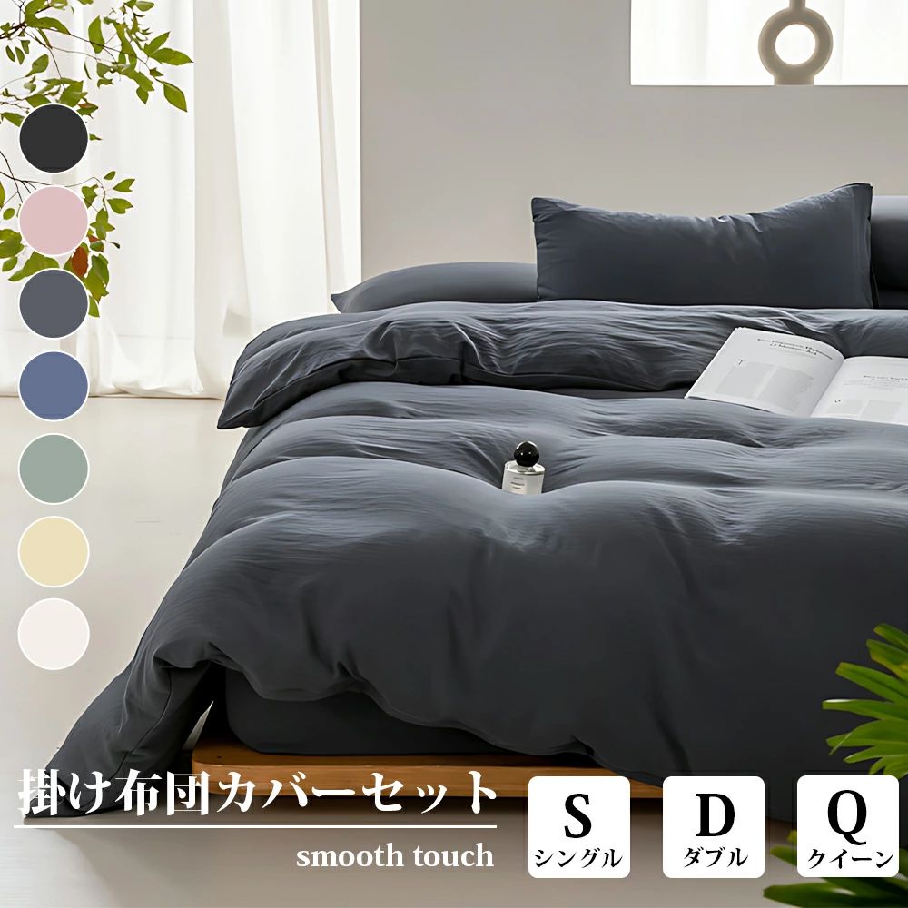 レビュー投稿で次回使える2000円クーポン全員にプレゼント■サイズ・色違い・関連商品関連商品の検索結果一覧はこちら■商品内容※このページは「掛布団カバー+枕カバー2点セット」の販売ページになります。自然の風合いをそのままに・洗い加工で心地よい肌触り・先染めならではの奥深い色味・吸水性・保温性のある綿100%■素肌にやさしい天然繊維 洗いざらしコットン100%洗いを施しているので、生地の表面にわずかなしわ感があり、使いはじめから、やわらかく心地よい肌触りです。■汗を気にせず、さらりと爽やか吸水性・吸湿性が高く汗や、空気中の水分を吸い取り、乾きやすいので、さらっとした質感を保ちます。■オールシーズン心地よい保温性のある綿素材なので、冬は、外の冷たい空気を感じさせず暖かな使い心地です。■先染めならではの奥深い色味糸の中心部までしっかりと染色されているため、深みのある色合いが魅力。また、色落ちしにくく、洗濯での色移りの心配もありません。■洗うたびにくたっとこなれる洗濯を重ねるほど、やわらかく、肌に馴染みます。・丈夫な綿100%で気軽に洗える ※洗濯機をご利用の場合は洗濯ネットに入れ、乾燥機の使用は避けてください。■毎日使う物だからこそ、快適に。・耐久性 洗濯を繰り返してもへたりにくく、耐久性に優れています。・静電気が発生しにくい 吸湿性が高いため、帯電しづらいのも特徴です。■簡単着脱 快適へのこだわり・掛布団カバー 8か所のスナップボタンでズレを防止(8か所固定式) 肌に触れない隠しファスナー 着脱しやすい210cm・ボックスシーツ 全周ゴム入り 18cmくらいまでのマットレスに対応・敷布団カバー 全開するので着脱しやすい 210cmの隠しファスナー ※厚み6cmまで対応・枕カバー 隠しファスナー式 43×63cmのまくらに最適です。■Color Variationほっとくつろげる落ち着いたカラー・GRAY グレー・IVORY アイボリー ※少しグレーがかった色味になります。・BLUE ブルー・PINK ピンク■SET・マットレス用3点セット 掛布団カバー+ボックスシーツ+枕カバー・敷布団用3点セット 掛布団カバー+敷布団カバー+枕カバー・掛布団カバー・枕カバー2点セット 掛布団カバー+枕カバー※シングルのみのお取り扱いになります。■単品&サイズ・掛布団カバー シングル:約150×210cm・敷布団カバー シングル:約105×215cm・ボックスシーツ シングル:約100×200×25cm・枕カバー 約43×63cm■商品スペック■サイズ(約)掛布団カバー:150×210cm(対応サイズ:150×210cmの掛布団に最適)敷布団カバー:105×215cm(対応サイズ:100×210cmの敷布団に最適)ボックスシーツ:100×200×25cm(対応サイズ:100×200×厚さ18cmくらいまでのマットレスに対応)枕カバー:43×63cm※掛布団カバー、敷布団カバー、ボックスシーツ全てシングルサイズ■素材綿100%(共通)■カラーグレー、アイボリー、ブルー、ピンク※アイボリーは、少しグレーがかった色味になります。■仕様・特徴掛布団カバー:8か所スナップボタン、210cm隠しファスナー、先染め洗いざらし敷布団カバー:210cm隠しファスナー、先染め洗いざらしボックスシーツ:全周ゴム付き、先染め洗いざらし枕カバー:隠しファスナー式、先染め洗いざらし■生産国中国(共通)【商品に関する注意事項】・カバーやシーツのみのお届けとなります。ベッドや枕、マットレス本体は付きませんので、あらかじめご了承ください。※アイボリーは、黄色みがかった白に少しだけ灰色を混ぜて暗くした色合い(グレーがかった色味)になります。あらかじめご了承ください。・洗濯機をご利用の場合は洗濯ネットに入れ、乾燥機の使用は避けてください。・写真の色調はモニターの機種や設定により実際の商品と異なる場合があります。 また光の反射や蛍光灯の違いなど、使用環境によっても商品画像と異なる色味に感じる場合がございますので、あらかじめご了承ください。・製品のデザイン・仕様・梱包は予告なく変更することがございます。あらかじめご了承ください。【配送について】・本商品は、北海道・沖縄・離島への配送はいたしかねます。あらかじめご了承ください。・本商品は、配送希望日、時間帯をご指定可能です。 ‐配送希望日は出荷目安(最長)の 7 - 30日後の間でご指定ください。 ‐最短でのお届けをご希望の場合は「指定なし」を選択してください。 ※配送先エリア等でご希望に添えない場合がございます。 ※在庫状況により、出荷が遅れる場合がございます。■送料・配送についての注意事項●本商品の出荷目安は【1 - 7営業日 ※土日・祝除く】となります。●お取り寄せ商品のため、稀にご注文入れ違い等により欠品・遅延となる場合がございます。●本商品は仕入元より配送となるため、北海道・沖縄・離島への配送はできません。 5,740円 税込 送料込 カードOK イーグルアイ楽天市場店 ![]() |