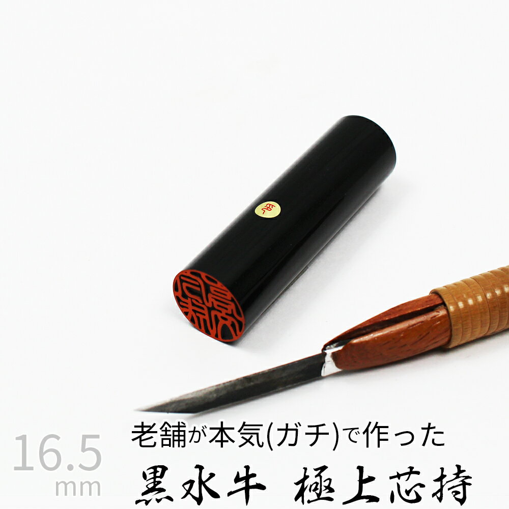 商品詳細 本黒水牛 極上芯持ち 印面朱色 黒水牛 極上芯持ちは、耐久性・硬度・粘りにも優れ、篆刻には大変に適した材質です。 黒水牛は中心部になるほど組織が緻密で丈夫なのですが、こちらの黒水牛は全てその中心部で採った黒水牛の中でも高級品の芯持ちを使用しております。当店の印鑑は芯持ちの中でも一本の角から一本しか取れない極上品を扱っております。 また、黒水牛などの角・牙系の印材は、朱肉に馴染みやすく、当店の面擦り技術と合わせた印材は非常にきれいな印影を捺すことができます。 こうしたことから、実印・銀行印や会社の代表印に適しており当店一番人気の印材です。 価格的にも、他の角・牙系の印材と比べてお手頃に手に入りやすくオススメです。 ※天然の素材ということもあり、黒水牛は乾燥にとてもデリケートな印材です。使用後はケースに入れて金庫等の冷暗所に大切に保管して下さい。 エアコンや冬期の乾燥には特にご注意頂き、オリーブオイル等でお手入れ下さい。 きれいな印影 捺印性は8割方面擦りという工程で決まります。 「面擦り三年」と言われるほど難しい技術ですが、一本一本手を抜かず、丁寧に面擦りしてから彫刻させていただきます。 これにより印面が目に見えないほど僅かに湾曲し、押印しやすい印鑑となります。 印鑑の中心は目に見えないくらい少しだけ盛り上がっております。 これはキレイな印影を出すための昔ながらの工夫です。 印面がわずかに湾曲しているので、朱肉が紙にまんべんなく塗布されます。 ですので捺印のしやすさは抜群です。 書体 笑印堂の陰影デザインに使われている書体は全て職人の手入力で行っております。 日本の伝統的な美しい文字。熟練された感性で描く白舟書体を採用。 日本には数万点以上の書体が存在していると言われております。 百年以上の歴史を誇る弊社の熟練した職人が数多くある書体の中から厳選した書体。そんな白舟書体を6種類ご用意。 ・吉相体→篆書体を日本で独自に変形させた書体。縁起が良いとされ、多くの人に好まれる書体です。 ・篆書体→中国から伝わった書体で最も古い漢字のルーツ。お札の刻印「総裁の印」「発券局長」で有名です。 ・古印体→奈良・平安時代に作られた書体で、隷書体をベースにした丸みのある書体。別名「虫食い印」とも言われます。 ・隷書体→中国の書道でよく使われ、書のかけ菊などによく見る書体。全体に安定感がある書体です。 ・楷書体→隷書体を基に作られた書体。きちんと読みやすく、現在では一般的に使われております。 ・行書体→楷書体を崩した速記向きの書体。文字が流れるようなイメージで書かれています 日本の伝統的な美しい文字の流麗さをさらに引き立ててくれる書体で、ひとつひとつ丁寧にお名前の文字を作成させていただきます。 彫刻 職人による手彫り仕上げ彫刻です。 大まかに機械で粗彫り ↓ 熟練の職人が丁寧に手仕上げ なので、一から全て手彫りということはなく、大幅なコストカットを実現。 彫刻刀で印刀する際には、機械ではどうしても表現しきれない文字の微調整を行います。 しかし、職人の手仕上げは時間と技術がいる作業で、この工程を省くお店が見受けられるのでご注意ください。 もちろん、当店の全ての印鑑はこちらの工程を省くことは一切しておりませんのでご安心下さいませ。当店自慢の職人が一つひとつ丁寧に真心こめて作成いたします。 用途 個人の実印・銀行印・認印としてご利用ください。 また、母の日、父の日、敬老の日、誕生日プレゼントなど、定番のギフトイベントに印鑑の贈り物を贈ってみませんか。 学校の先生方には卒業する生徒へオリジナルの卒業記念品としてもご利用いただけます。 また、入学祝い、卒業祝い、成人式のお祝いと人生の節目となる祝儀の品としても最適です。 結婚祝い、出産祝い、就職祝い、進学祝いなどにもどうぞ。 サイズ 16.5mm丸×60mm 最大彫刻文字数は、 漢字・ひらがな・カタカナ:9文字 英数字:12文字 デザイン確認サービス 1案につき別途500円 メール若しくはFAXにて確認いただけます。 ※確認作業が入りますので納期が大幅に遅れる場合が御座いますのでご了承ください。 ※印面に直接、名入れするので仕上がりが多少異なります。 10年間保証 お客様が当店にてお買い上げいただいた印鑑で万が一にも「印面の欠け」や「摩耗」により、捺印が不可能になった場合に、ご購入日より10年以内であれば無料で彫り直しを致します。 当店より発行されました保証書は大切に保管してください。 保証書は再発行いたしませんので、大切に保管してください。保証書を紛失した場合は10年保証の対象外となります。 ※送料(往復分)はいたずら防止のためお客様負担とさせていただきます。 ※以前と同じ印影は法律上、技術上お作りできません。(彫刻内容の変更もできません) ※印材を削って作製しますので1〜3mm程、短くなります。 注意事項 ■注文画面にて彫刻内容の記