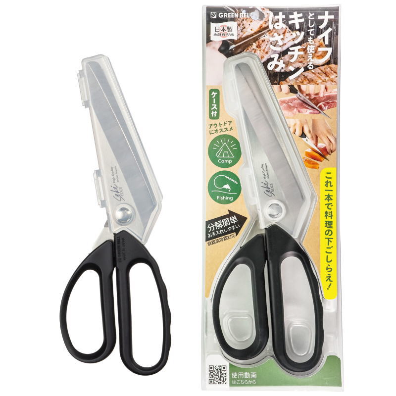 1956. [ ペティナイフ 料理 アウトドア キャンプ 持ち運び 野菜 果物 海鮮 お肉 ] 【メール便】 グリーンベル ステンレス製 ナイフ&キッチンはさみ SJ-K220 収納ケース付 新潟 三条 日本製 本格的な鋭い切れ味でペティナイフとハサミ両機能を備えています。 野菜や果物・滑りやすいイカやお肉もスパスパとカットすることが出来ます。 キャンプやアウトドアにも持ち運び出来るよう、刃先をカバーする収納ケースも付いています。 お手入れしやすい分解式・本体は食洗器対応です。ナイフとしても使えるキッチンはさみ!キャンプやアウトドアでの食材カットはこれ一本で解決! 4,450円 税込 送料別 カードOK 岩内金物店楽天市場店 ![]() | ||