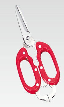 【用途】 キッチン鋏。 【特徴】 カニ、昆布等硬いものからビニール、袋物の柔らかい物の開封に重宝します。 常に刃のカーブをキープするので刃全体の軽快な切れ味が続きます。 ギザ刃が、切れにくい食材も薄いビニールもしっかりキャッチします。 ハンドルは4本指がすっぽりはいり、力が刃先にバランスよく伝わります。 ハンドル部には、キャップオープナーが付いており、キャップの蓋開けやクルミ割りに便利です。 【仕様】 ●サイズ:85×192×10mm。 ●重量:105g。 ... 2,200円 税込 送料込 カードOK 御用待本舗 楽天市場店 ![]() | ||