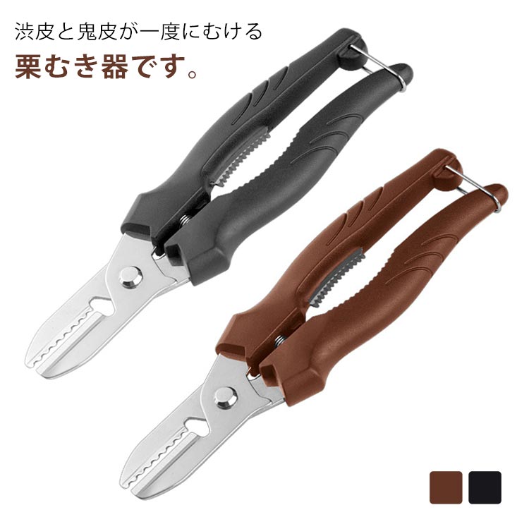 渋皮と鬼皮が一度にむける栗むき器です。軽くて持ちやすく、刃の部分は頑丈なので、栗の硬い皮を楽に剥けます。人間工学に基づいて手に優しいソフトグリップハンドルで、手にやさしくなじみ、力をいれやすいデザインになっております。ハサミ式で片方に切れ味の鋭い切刃がもう一方にはギザギザの刃がついているから、鬼皮と渋皮がキレイに一緒に剥けるので普通に剥くより効率的です。むきやすく疲れにくい。ロック付きで収納時も安心!手にやさしくなじみ、疲れにくいハンドル形状。両刃を左右入れ替えることができますので、左利きの方でもご使用いただけます。持ち手についたグリップによって滑りにくくなっています。栗の皮むき以外にも里芋の皮むきなどにもおすすめです。包丁では安全に剥くことができなかった栗の鬼皮渋皮を簡単に剥ける鋏です。 サイズ F サイズについての説明 サイズ:18.5*4.5cm 重量78g 素材 ステンレス ABS 色 黒 茶色 備考 ●サイズ詳細等の測り方はスタッフ間で統一、徹底はしておりますが、実寸は商品によって若干の誤差(1cm?3cm )がある場合がございますので、予めご了承ください。 ●製造ロットにより、細部形状の違いや、同色でも色味に多少の誤差が生じます。 ●パッケージは改良のため予告なく仕様を変更する場合があります。 ▼商品の色は、撮影時の光や、お客様のモニターの色具合などにより、実際の商品と異なる場合がございます。あらかじめ、ご了承ください。 ▼生地の特性上、やや匂いが強く感じられるものもございます。数日のご使用や陰干しなどで気になる匂いはほとんど感じられなくなります。 ▼同じ商品でも生産時期により形やサイズ、カラーに多少の誤差が生じる場合もございます。 ▼他店舗でも在庫を共有して販売をしている為、受注後欠品となる場合もございます。予め、ご了承お願い申し上げます。 ▼出荷前に全て検品を行っておりますが、万が一商品に不具合があった場合は、お問い合わせフォームまたはメールよりご連絡頂けます様お願い申し上げます。速やかに対応致しますのでご安心ください。 949円 税込 送料込 カードOK 西村商店 ![]() | ||