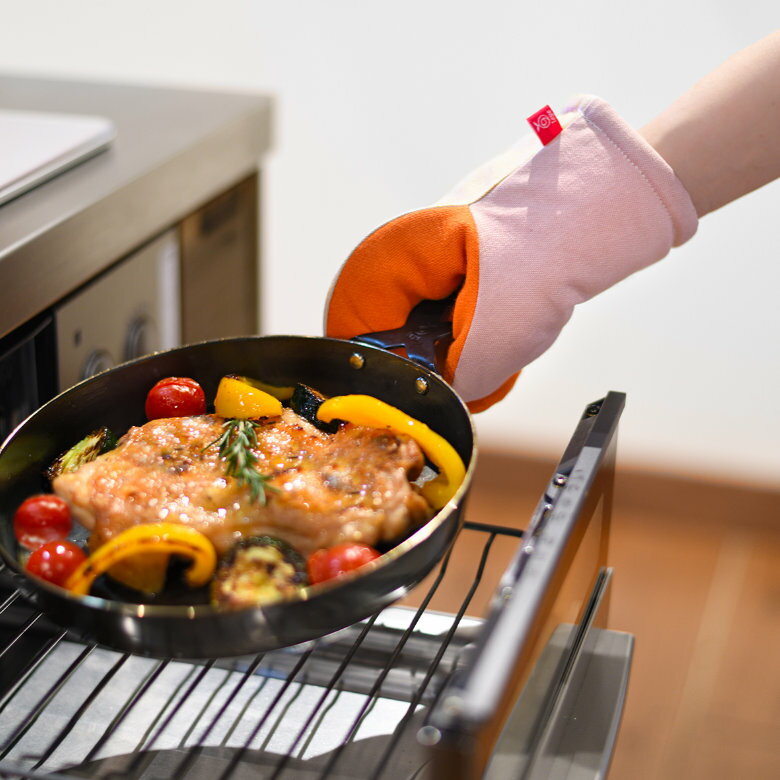 消防士の手袋メーカーと考えた耐熱ミトン消防士の手袋素材で作った調理ミトン。耐熱温度330℃で魚焼きグリルでの高温調理にも安心して使えます。カラーはピンク/グレーとベージュ/ネイビーの2種類をご用意。女性の手にフィット、使いやすいコンパクトサイズです。『ケブラー×ノーメックスWニット』に加え、断熱素材を効果的に組み合わせた5層構造で効果的に熱を遮断します。一般的なミトンの約3倍、耐熱ミトンとの比較でも約2倍の断熱力を発揮します。「大きくてゴワゴワした耐熱ミトンはつかみにくい。。」そんな悩みの声に応えた【センターステッチ】。ミトンの中で指先がずれたりせず、しっかりつかめます。ステッチがセンターなので、左右どちらの手でも使えるユニバーサルデザイン。ステッチも熱に強く丈夫なケブラー糸を使用しています。しっかりとつかめるので、ホームベーカリーにも使いやすくおすすめ。従来のミトンは女性には大きいと不満の声が多くありました。耐熱はもちろん、女性に使いやすいコンパクトサイズにこだわりました(約全長190×幅145mm)。サイズ:約全長190×幅145mm原材料:綿、ポリエステル、アラミド(ケブラー×ノーメックス繊維Wニット)重量:約80g生産国:ベトナム製(企画:日本)※完全に熱を遮断するものではありません。炭などの着火物を直接つかんだりしないでください。※つかむ物の温度によっては生地が変色したり、コゲが発生する場合があります。※洗う場合は、洗濯機は使用せず中性洗剤で手洗い、日陰でしっかり乾燥させてください。本品は消防士の手袋素材にも使われているアラミド(ケブラー&ノーメックスWニット)を使用しています(手の平側のみ)。ケブラー&ノーメックスWニットとは【ケブラー:高強度、高弾性、耐切創性】【ノーメックス:耐熱、難燃、防炎性】いずれも極めて優れた性能を持つアラミド繊維(高機能繊維)で、この二つを混紡したもの。米国デュポン社の登録商標です。この商品を見ている人は、こちらも チェックされています ↓ 3,300円 税込 送料別 カードOK フライパン専門店 鐵兎堂 TETTODO ![]() | ||