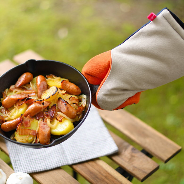 グッとつかめる耐熱ミトンに大きいサイズが仲間入り消防士の手袋素材で作った調理ミトン。耐熱温度330℃で魚焼きグリルでの高温調理にも安心して使えます。ご要望にお応えし、男性も使いやすい大きいサイズを追加しました。レギュラーは女性、大サイズは男性に使いやすいサイズ感ですが、大サイズはロング丈で手首までしっかりガードできるので、フィット感よりもそちらを重視される方は女性でも大サイズをおすすめいたします。カラーはピンク/グレーとベージュ/ネイビーの2種類をご用意。ロング丈なので手首までしっかりガード。高温になるオーブン料理も安心です。『ケブラー×ノーメックスWニット』に加え、断熱素材を効果的に組み合わせた5層構造で効果的に熱を遮断します。一般的なミトンの約3倍、耐熱ミトンとの比較でも約2倍の断熱力を発揮します。「大きくてゴワゴワした耐熱ミトンはつかみにくい。。」そんな悩みの声に応えた【センターステッチ】。ミトンの中で指先がずれたりせず、しっかりつかめます。ステッチがセンターなので、左右どちらの手でも使えるユニバーサルデザイン。ステッチも熱に強く丈夫なケブラー糸を使用しています。しっかりとつかめるので、ホームベーカリーにも使いやすくおすすめ。サイズ:約全長270×幅155mm原材料:綿、ポリエステル、アラミド(ケブラー×ノーメックス繊維Wニット)重量:約110g生産国:ベトナム製(企画:日本)※完全に熱を遮断するものではありません。炭などの着火物を直接つかんだりしないでください。※つかむ物の温度によっては生地が変色したり、コゲが発生する場合があります。※洗う場合は、洗濯機は使用せず中性洗剤で手洗い、日陰でしっかり乾燥させてください。本品は消防士の手袋素材にも使われているアラミド(ケブラー&ノーメックスWニット)を使用しています(手の平側のみ)。ケブラー&ノーメックスWニットとは【ケブラー:高強度、高弾性、耐切創性】【ノーメックス:耐熱、難燃、防炎性】いずれも極めて優れた性能を持つアラミド繊維(高機能繊維)で、この二つを混紡したもの。米国デュポン社の登録商標です。この商品を見ている人は、こちらも チェックされています ↓ 4,400円 税込 送料別 カードOK フライパン専門店 鐵兎堂 TETTODO ![]() | ||