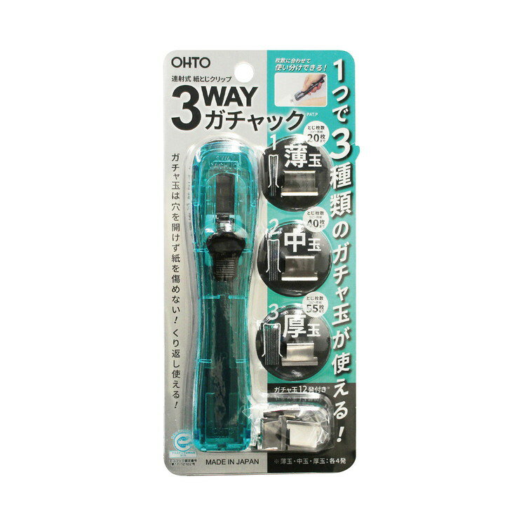 ■商品特徴ひとつで3サイズのガチャ玉に対応。繰り返し使えて経済的。紙を傷めず綴じられる。つけ外しが簡単。■サイズ外寸:幅30×奥27.2×高138.7mm重量:28.7g■材質本体=再生PC/ステンレス,スライダー部=POM■備考専用玉(薄玉・中玉・厚玉各4個)付【送料について】北海道、沖縄、離島は送料を頂きます。【オート 3WAYガチャック G3W-600】クリアピンクブルーブラック 1,200円 税込 送料別 カードOK リコメン堂生活館 ![]() | ||