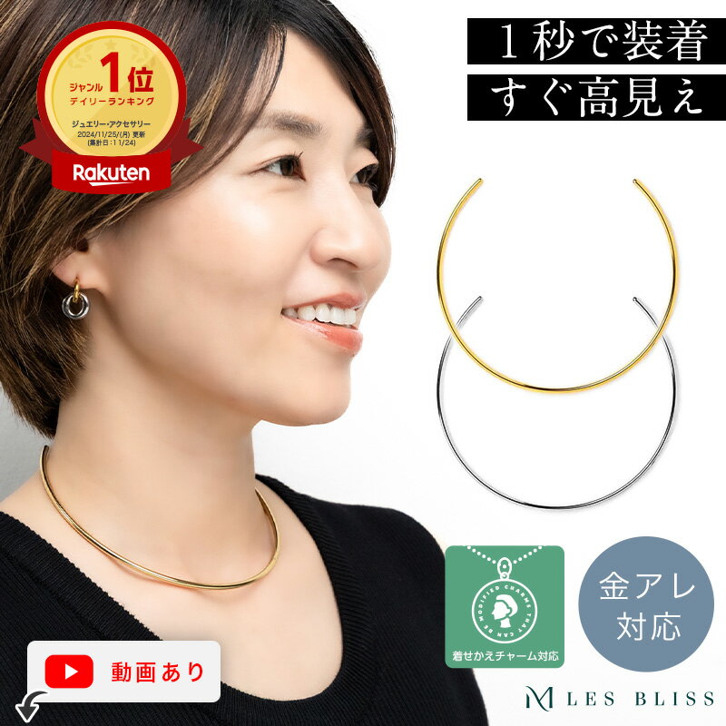 【子育てママに寄り添うアクセサリー専門店 レスブリス楽天市場店】 こんにちは!店長のゆかりんです♪ レスブリスは「子育てもオシャレもあきらめたくない!」そんなママたちを応援するアクセサリーブランドです。 忙しい朝でもパッとつけられて、どんな服にも似合う。抱っこしても引っかからない。家事・育児・お仕事の合間でも心がふわっと華やぐ、そんなアイテムを心を込めてお届けしています。 ママ友とのランチや保育園の送り迎え、運動会や卒園式・入園式などの行事にもぴったり。 もちろん、誕生日プレゼントや出産祝い、自分へのご褒美にもおすすめです。 毎日がんばるあなたの毎日に、そっと寄り添えるアクセサリーを。 レスブリスが、ママの毎日をちょっぴりラクに、もっと楽しくできたらうれしいです♪トップ > ネックレス > 金属アレルギー対応 > 着せかえチャーム対応ネックレス > 楽天ランキング1位 \オシャレをあきらめない!/ ママアクセだからできること 最近、私の周りでも「チョーカーって便利!」という声をよく聞きます。まだ試したことがない方には、ぜひ使ってみてほしいアイテム。ネックレスとはまた違うこなれ感が出て、さっとつけるだけでおしゃれが決まるんです。シンプルなデザインだからこそ、Tシャツ、ニット、ワンピース…どんなスタイルにもすっと馴染んで、1年中活躍します。 レスブリスでは、ゴールドが大好評だったので、リクエストにお応えしてシルバーも追加しました!どちらも肌なじみがよく、コーディネートをさりげなく格上げしてくれます。素材にはステンレスを使用しているので、水や汗に強く、金属アレルギーの方にも安心。さらに、軽量で着脱しやすい仕様なので、気軽に毎日身につけられます。 私自身、シンプルなTシャツにチョーカーだけを合わせる潔いスタイルが大好きですが、華やかさをプラスしたいときは、他のネックレスと重ねづけを楽しんでいます。この自由なアレンジができるのも、シンプルなチョーカーならでは。 すでに愛用している方も、まだ試していない方も、ぜひこのステンレス製チョーカーを取り入れてみませんか?デイリーにはもちろん、ギフトにもおすすめの万能アクセサリーです。 【サイズ調整について】 開口部は標準的な7〜8cmサイズです。適切なサイズは首の幅よりやや小さめが目安。サイズが合わない場合は、「両サイドをぐっと引っ張る」または「両サイドを手のひらでぐっと押し込む」と調整可能です。押し込む際は少し力が必要ですが、万が一折れた場合は永久保証にて交換対応しますので、どうぞご安心ください! 【軽微な黒ずみについて】 こちらの商品はメッキ加工の工程上、わずかな黒ずみが見られる場合があります。使用には問題ない範囲として良品としていますので、あらかじめご了承ください。 サイズ ・外径 :約12cm ・線径 :約3mm ・開口部:約7〜8cm 素材 ステンレス 重さ 約16〜18g \今すぐ使える1000円クーポン/ 《 LINE友だち登録 》 2,900円 税込 送料別 カードOK レビュー364件 ママ向けアクセサリー レスブリス ![]() | ||