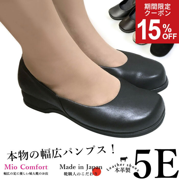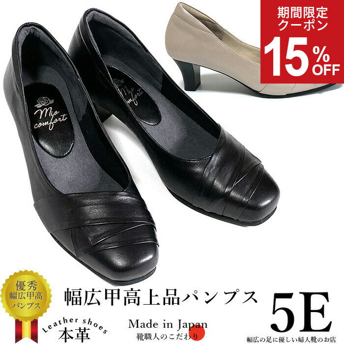 母の日ギフトにも好評です! 「日本製のクオリティー Made in Japan!」 この靴は裁断、縫製、靴形成型などすべて日本で製造しております。 細部にわたるまで丁寧で行き届いた日本の靴職人の技をあなたの足で実感してください。 品番:UP60 材質:高級本牛革 中敷:スポンジクッション付 足幅: 幅広EEEEE(5E) ヒール高さ:5cm 製造:日本 期間限定、パカパカ防止、走れるストラップ付!他のお靴にも使用できます♪ 幅広タイプの5E(EEEEE)の高級婦人靴です。幅広甲高で悩んでいる女性におすすめです! ビジネスシーンにも履けるパンプスタイプ! 靴職人がひとつずつ丁寧に、丁寧に手間をかけて作っています。 本革使用で靴職人による日本国内生産です。 【特徴】 ●5e幅広タイプで外反母趾に悩む方にもおすすめです。 ●足疲れがしにくい日本製高級本革婦人靴 ●中敷はスポンジがひいてありふかふかしていて気持ちよいです! ●高級本牛革で柔らかく足入れが良く長時間履いても靴擦れしにくい♪ ●オーソドックスなデザインなのでお仕事にも、また休日のお出かけ履きにも適しています。 ●毎日履いても大丈夫!高級本革を使用しており、お手入れしやすくなっています。 かわいい幅広靴!5Eで外反母趾や靴ずれに悩んでいる女性に! メーカー希望小売価格はメーカー商品タグに基づいて掲載しています※5Eのサイズ感はメーカーにより異なります。 当メーカーではこの木型で製造している靴は5Eの表記でご提供しております。 ブラック:飽きの来ないフォーマルにも使える定番カラー。一番人気です。 ライトベージュ:新登場!すっきりしたシルエットと上品な光沢で足元をエレガントに演出。 当店人気No,1 5Eシンプルパンプスをベースにつくりました!年齢を問わず愛される 靴職人によって熟考されたシルエット <幅広甲高さんのお悩み> ●年を重ねて以前は履けてた靴が最近痛くて履けない… ●痛くならないお出かけ用のおしゃれな黒パンプスが欲しい! ●幅広甲高の靴をいろいろ試したけどどれもダメ! 【Point.1】幅広設計で甲幅ゆったり スッキリとしたつま先の女性らしいデザインでビジネスシーンもOK!たくさん歩ける! 甲をしっかりホールドおしゃれ度UP 流行に左右されないオーソドックスなシルエット 足がきれいに見える5cmヒール 【Point.2】幅広さんもスッキリ見えるシルエット 幅広甲高な甲にしっかりフィット。幅広でもスポスポ脱げません。 幅広甲高さんの足をほっそりみせてくれる履口ライン。かかと部分をしっかりホールドすることによりスポスポ抜けません 【Point.3】甲高さんも安心 スッと履ける履口ライン 甲の帯デザインは黒パンプスにアクセントを与えてくれます。おしゃれ度アップ! 【Point.4】幅広甲高でも痛くなりにくい 熟練の靴職人によるオリジナルの木型! ゆったりしてるけど隙間ができない爪先。 ※個人差はあります。軽度の外反母趾の方向け 【Point.5】足に優しい工夫がいっぱい 裏側全てが柔らかクッション裏地でふかふか 厚さ5mmの中敷きを使用靴底からふわふわです 安定感のあるヒール5cmでも歩きやすい かかとが痛くならないふわふわクッション! 1足は持っていたいフォーマルパンプス。 なんの特徴もないパンプス、だからこそシルエットと素材が大事です。 オフィスや通勤、フォーマルに幅広だけど、すっきりしてる、足がきれいに見えるフォルムを研究しました。 <スタッフとその仲間の着用レビュー> 23.5cm 78才 最近足がしびれる 孫の結婚式にどうしても黒いパンプスを履きたくて、こちらの パンプスを着用。長時間履かない予定でも5cmヒールという ことで家族はあまりすすめませんでしたが、無事式の間、この パンプスで過ごせました!写真写りもきれいでしたし満足です! 少し外反母趾 24cm 47才 ちらのデザインが気に入りました。品の良いブラックパン プスです。外反母趾のでっぱりも気になりません。 とても履きやすく疲れません。ただ長時間歩くとやはり5cm はちょっと高いかなという気がします。3cm位が理想かもです。 「日本製のクオリティー Made in Japan!」 この靴は裁断、縫製、靴形成型などすべて日本で製造しております。 細部にわたるまで丁寧で行き届いた日本の靴職人の技をあなたの足で実感してください。 品番:u60 材質:高級本牛革 中敷:スポンジクッション付 足幅: 幅広EEEEE(5E) ヒール高さ:5cm 製造:日本 幅広タイプの5E(EEEEE)の高級婦人靴です。幅広甲高で悩んでいる女性におすすめです! ビジネスシーンにも履けるパンプスタイプ! 靴職人がひとつずつ丁寧に、丁寧に手間をかけて作っています。 本革使用で靴職人による日本国内生産です。 【特徴】 ●5e幅広タイプで外反母趾に悩む方にもおすすめです。 ●足疲れがしにくい日本製高級本革婦人靴 ●中敷はスポンジがひいてありふかふかしていて気持ちよいです! ●高級本牛革で柔らかく足入れが良く長時間履いても靴擦れしにくい♪ ●オーソドックスなデザインなのでお仕事にも、また休日のお出かけ履きにも適しています。 ●毎日履
