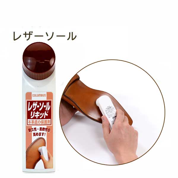 本革底に防水効果を与え、 耐久性・柔軟性をアップさせる保護剤です。 65mL【使用方法・使い方】・革底の汚れをブラシまたは布できれいに落としてください。・キャップを取り軽く塗布器を押し付けスポンジに液を十分に含ませて塗ってください。・約30分で乾燥します。充分に乾かしてから靴をお履きください。■商品詳細●本革底に浸透し皮革に防水効果を与え、水の浸透を防ぎ、靴底の耐久性をアップさせます。●ミンクオイル配合により本革底の柔軟性を高め、ヒビ割れ等の劣化を防ぎます。●防カビ剤配合によりカビの発生を抑えます。●本革底の特徴である通気性を損ないません。●手を汚しにくい塗布器付きの塗りやすい液体タイプです。■使用上の注意●落とすと容器が破損する恐れがあります。●お子さまの手の届かないところに保管してください。万一飲み込んだ場合は水を飲ませるなどの応急処置をし、医師にご相談ください。●認知症の方などの誤飲を防ぐため、置き場所に注意してください。成分:フッ素樹脂、油脂、界面活性剤、有機溶剤種類:乳化性JANコード 4971671900158MADE IN JAPAN 880円 税込 送料別 カードOK ウエストコースト アウトドアShop ![]() | ||