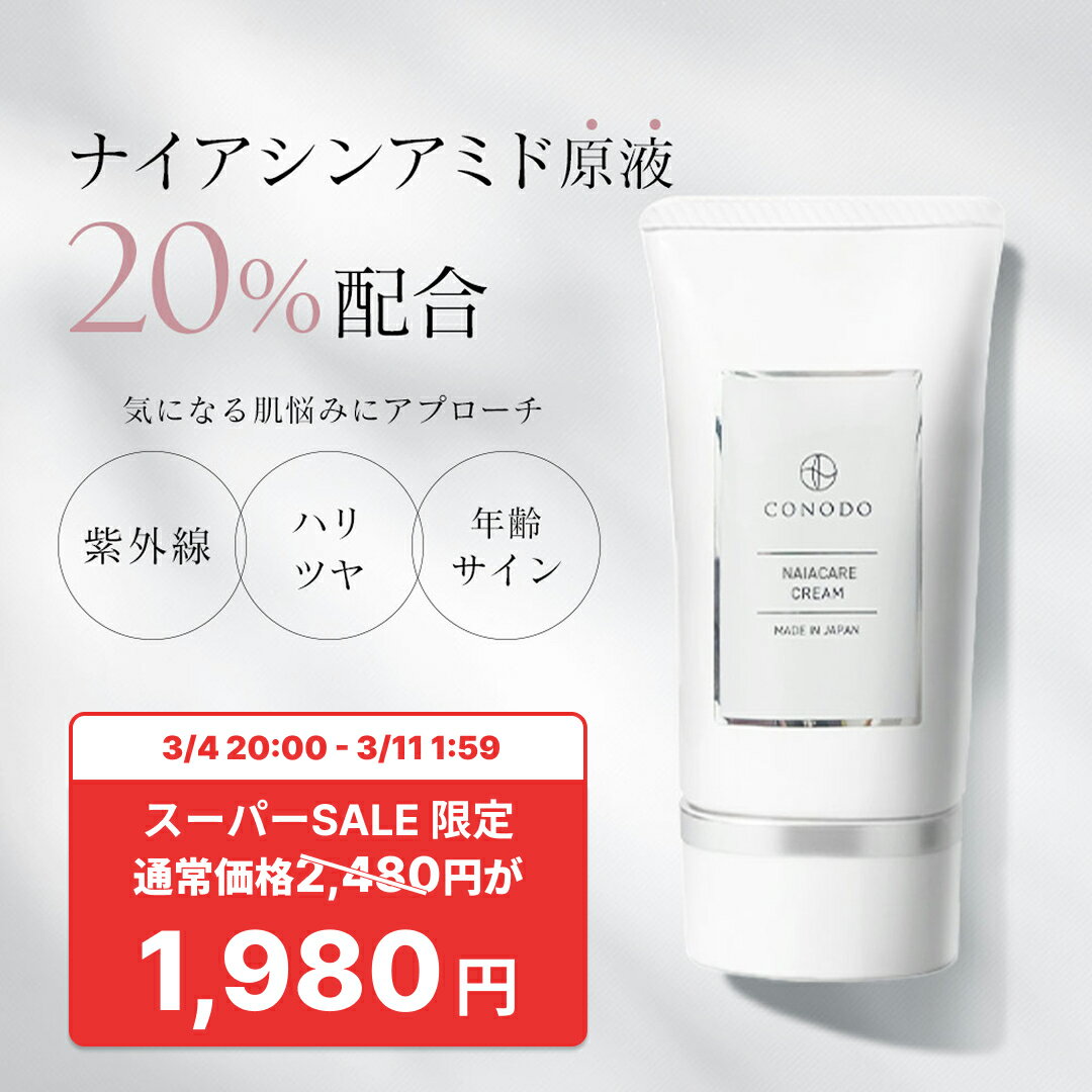 商品スペック 名称 コノド ナイアケアクリーム 内容量 30g 商品区分 日本製・化粧品 広告文責 株式会社Q美ワールド 0120-935-478 成分内容 水、ナイアシンアミド、BG、グリセリン、プロパンジオール、ペンチレングリコール、トリエチルヘキサノイン、エチルヘキサン酸セチル、(アクリル酸ヒドロキシエチル/アクリロイルジメチルタウリンNa)コポリマー、スクワラン、ステアリン酸水添ヒマシ油、ホホバ種子油、アルガニアスピノサ核油、ワサビノキ種子油、カルボキシメチルフェニルア... 2,480円 税込 送料込 カードOK レビュー154件 conodo 楽天市場店 ![]() | ||