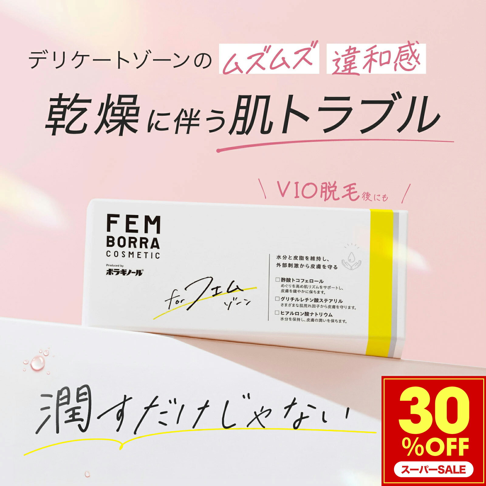 【フェムケア、はじめてみませんか?】 本品は、女性のデリケートなフェムゾーン(女性器〈膣、外陰部、会陰、尿道、肛門〉まわり)のために 製薬会社がこだわりを持って開発した、使い切りタイプのケアクリームです。 乾燥を起因とするフェムゾーンの悩みや外部刺激による肌ストレスが気になる方へ、 潤いをキープし健やかな肌へ導きます。 【こんな方におすすめ】 ・年齢を重ねるごとに、フェムゾーンの乾燥や、違和感などが気になってきた方。 ・保湿だけではなく皮膚の状態を整えたり、肌荒れ因子からフェムゾーンを守りたい方。 ・VIO脱毛や、下着、生理用品の擦れ等、外部刺激による肌ストレスの蓄積が気になる方。 ・肌への優しさを考えた成分で、毎日のフェムゾーンケアをしたい方。 【フェムゾーンのトラブルの原因から設計:3つの厳選成分】 トラブルの原因にアプローチ:女性ホルモンの分泌が低下することで生じる “乾燥”悩み。 更年期以降の女性にみられる乾燥を起因とする、フェムゾーンの違和感、ごわつき、ムズムズ等の悩みに応えます。 “保湿だけじゃない!肌のSOSに応える厳選した3つの成分配合” └酢酸トコフェロール(整肌成分):めぐりを高め、肌リズムをサポートし、皮膚を健やかに保ちます。 └グリチルレチン酸ステアリル(肌荒れ防止成分):ムズムズなどフェムゾーンの不快感を生み出す肌荒れ因子から肌を守ります。 └ヒアルロン酸ナトリウム(保湿成分):水分を保持し、皮膚の潤いをキープ。しっとりとした肌へと導きます。 【HOW TO USE】 清潔に洗った手で、1回分を大陰唇、小陰唇、膣口などを中心に気になる部分の皮膚に 優しくなじませてください。 【こだわり】 シンプル設計:無着色、無香料、パラベンフリーを実現。敏感なデリケートゾーンの為の成分配合。 個包装で衛生的:0.35gの1回使い切り個包装が28包入っています。常に衛生的な状態で使用でき、旅行や外出先でのケアにも最適です。 【WHAT’S FEMBORRA?】 “痔にはボラギノール®”でおなじみの天藤製薬から生まれたフェムケアブランドです。 女性の尽きない生涯の悩みに寄り添い、ボラギノールから引き継がれる体質改善のサイエンスで がまんしない日常を目指します。名称フェムボラコスメティック フェムゾーンクリーム 製造国日本 内容量0.35g×28包 原材料水、グリセリン、ジメチコン、イソステアリルアルコール、ワセリン、(カプリル酸/カプリン酸)ヤシアルキル、酢酸トコフェロール、ペンチレングリコール、マイクロクリスタリンワックス、(PEG-15/ラウリルジメチコン)クロスポリマー、硫酸 Mg、プロパンジオール、グリチルレチン酸ステアリル、エチルヘキシルグリセリン、ヒアルロン酸Na、カプリルヒドロキサム酸 使用方法1回分を手に取り、気になる部分の皮膚になじませてください。 使用上の注意【ご使用上の注意】 ・お肌に異常が生じていないかよく注意して使用してください。 化粧品がお肌に合わないときすなわち次のような場合には、使用を中止してください。 そのまま化粧品類の使用を続けますと症状を悪化させることがありますので、皮膚科専門医等にご相談されることをおすすめします。 (1)使用中、赤み、はれ、かゆみ、刺激、色抜け(白斑等)や黒ずみ等の異常があらわれた場合 (2)使用したお肌に直射日光があたって上記のような異常があらわれた場合 ・傷やはれもの、しっしん等、異常のある部位にはお使いにならないでください。 ・粘膜部には使用しないでください。 【保管および取扱い上の注意】 ・本品は1回使い切りの個包装です。防腐剤を使用しておりませんので、開封後は速やかにご使用ください。 一度開封した製品を再び保管する事はおやめください。 ・他の容器に入れ替えないでください(誤用の原因となったり品質が変わることがあります)。 ・乳幼児の手の届かないところに保管してください。 ・極端に高温又は低温の場所、直射日光のあたる場所には保管しないでください。 ・開封する際は中身が飛び出さないようご注意ください。 ・油脂性の製品であり、衣類などに付着すると取れにくくなることがあるのでご注意ください。 広告文責(会社名・電話番号)天藤製薬株式会社 0120‐532‐504 区分(医薬品、医薬部外品、化粧品、医療機器、特定保健用食品、栄養機能食品、機能性表示食品・健康食品・ダイエット食品…等)化粧品 2,299円 税込 送料別 カードOK レビュー82件 BORRAオンラインショップ ![]() | ||