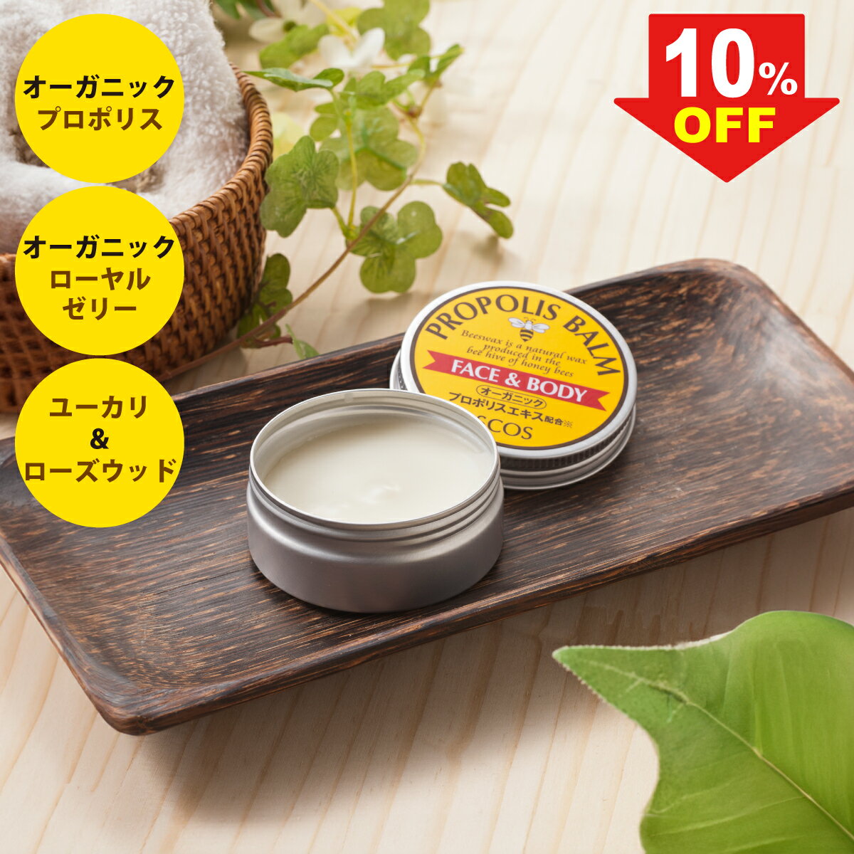 商品説明 スキンケアから手指や唇の保湿まで、幅広く使える万能バーム 肌の乾燥を防ぐ天然ミツロウにブラジル産のオーガニックプロポリスをたっぷり練り込み、さらにオーガニックローヤルゼリーや天然ビタミンE、天然アロマを配合した100%ナチュラル処方。 お顔はもちろん、指先からボディ、リップケアまで全身のお手入れにお使いください。 ポーチに入れて携帯にもぴったりなミニサイズ こんな時におすすめ ・ガサガサ、ヒリヒリに ・ブツブツ、カユカユに ・手、肌のカサカサに ・唇... 1,188円 税込 送料別 カードOK レビュー2件 SCOS 楽天市場店 ![]() | ||