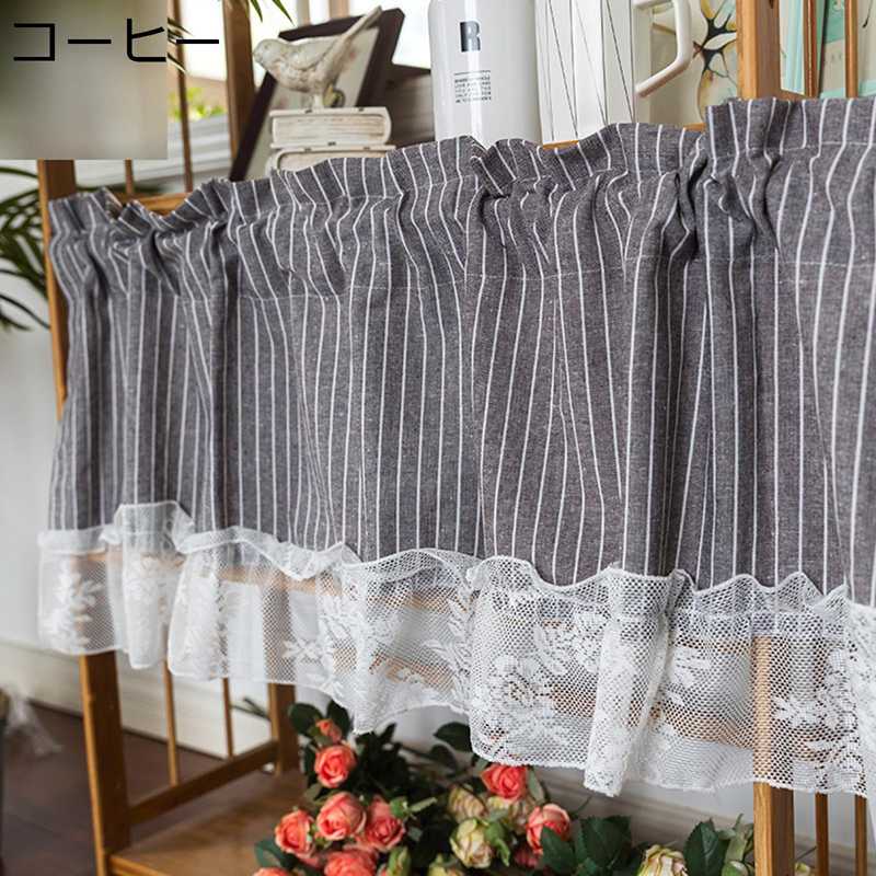 1159. 縞柄カーテン 小窓用 レース飾り カフェカーテン 遮光 断熱 UVカット 省エネ キッチン ベランダ 喫茶店 洗面所 装飾 インテリア 春夏秋冬 突っ張り棒なし 目隠し プライバシー対策 開業祝い ◆◇◆人気の秘密◆◇◆ a【お手入れ簡単】冷水または30度以下水洗い、低温で乾燥し、アイロンをします。洗濯機でもOK。 a【遮光性生地を使用】掛けるだけで日差しをカットしてくれます。またプライバシーの気になる小窓にかければ、お部屋のプライバシーを守るだけでなく、上品で柔らかな手触りでお部屋の雰囲気づくりに一役買ってくれます。 a【簡単お洒落に目隠し!】小窓や戸棚の目隠しにぴったりなカフェカーテンです。掛けるだけで気になるところを目隠ししてくれるだけでなく、お部屋を明るくオシャレに演出してくれます。使いやすさとオシャレさを兼ね備えたカフェカーテンです。 a【適応場所】洗面所やキッチンやパウダールームなどの小さな窓の明り取りや、ちょっとした収納の目隠しなど、幅広く使えます。気になる部分を隠しながら、お部屋をおしゃれに演出します。オフィス、レストラン、カフェも良い選択です。 ※商品内容: カフェカーテン 1枚(突っ張り棒別売り) ※備考:ご購入する前に窓を測定してください。一般的にカフェカーテンは幅が窓の1.75倍にするおすすめ。例えば、窓は幅80cm、カーテンは幅140cmぐらいおすすめ。 ◆◇◆注意事項◆◇◆ご覧のモニターの環境、撮影環境により実物と色味が異なって見える場合がございます。湿った状態で他のものと擦り合わせると色が移る恐れがあります。濃色品の洗濯時は、白色、淡色と分けて洗ってください。説明 a商品について a【メイン素材】:ポリエステル a【提示】 1.この商品はカーテンロッド(突っ張り棒)が含まれません。 2.ご購入前に窓とカーテンロッドのサイズを測ってください。 ご注意: ※できるだけ実物と同じ色合いになるようにしていますが、パソコンモニタの環境などによって実物と色合いが異なる場合がございます。予めご了承ください。 ※測り方の相違によって、1〜3cmの誤差がある場合がありますがご了承ください。 ※通関の不具合や悪天候などその他不可抗力が生じた場合には、商品の到着時間及び到着日が前後することがございますのでご了承下さい。 5,670円 税込 送料込 カードOK parte1 ![]() | ||