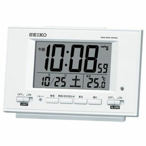 <セイコー電波目覚まし時計デジタル> ・夜でも見えるライト点灯 ・大きな液晶でさらに見やすく ・高級感の有る木目模様でギフトにも好適 ・ギフトにおすすめの安心感のある置時計スタイルです 画像2枚目:スタンド使用例 画像3枚目:アラームをセットすると点灯します 画像4枚目:スヌーズボタンを押すとより明るく光ります ○ プラスチック枠(薄金色パール塗装・一部木目模様) 前面:プラスチック ○ 電波修正機能(40kHz/60kHz自動選局・受信OFF機能つき) ○ 電子音アラーム ダンダントーンアラームアラームオートストップ機能(約5分間)アラームモニター機能 ○ スヌーズ ○ 常時点灯(アラームセットで点灯) ライトつき 液晶パネル角度調節用スタンドつき ○ 2099年までのフルオートカレンダー機能 ○ サイズ・重さ 82×206×51mm 370g ○ 温湿度表示(温度測定範囲:0℃〜40℃ 測定精度: ±2℃ 湿度測定範囲:25%RH〜85%RH 測定精度:±8%(25℃) ○○ 12時間制/24時間制切替式 液晶パネル角度調節用スタンドつき ○ 単2(アルカリ)×2 (電池寿命約1年間) ※モニター用電池として、マンガン電池を同梱しています。 電池切れ予告機能(液晶) 3,970円 税込 送料別 カードOK レビュー1件 腕時計・ジュエリー周南館 ![]() | ||