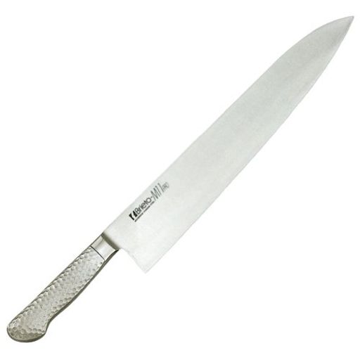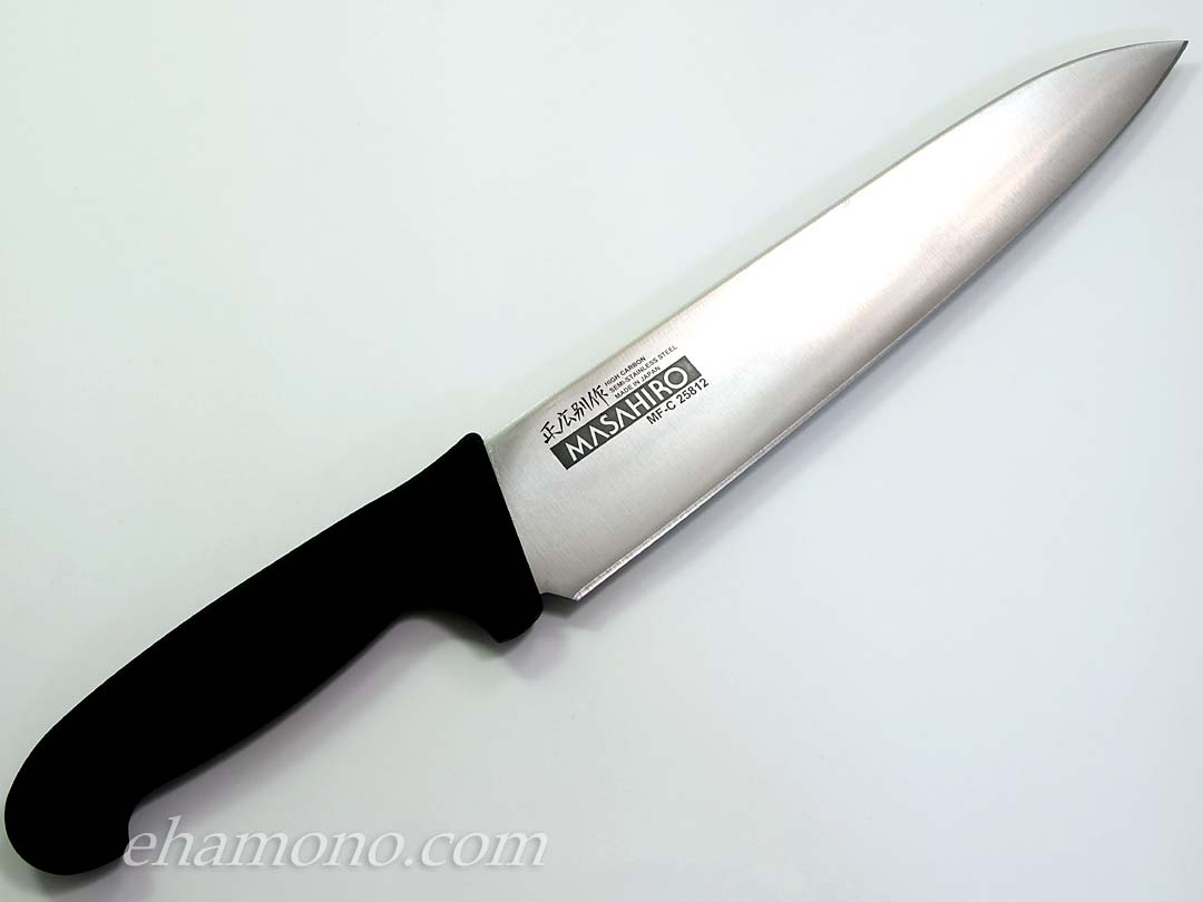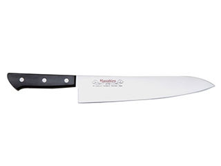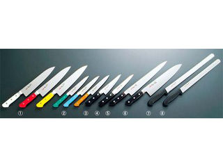 新タイプ、衛生的で握りやすいMF-C樹脂ハンドル(HACCP対応)の平切り8寸、刃渡り240mmの使いやすい牛刀です。 女性などが店頭でお肉を切る場合には、この8寸(240)が使いやすいです。 ハンドル素材は抗菌剤入りのエラストマー樹脂を採用。 従来のPAハンドルの物より、グリップを大きくすることにより握り、やすく滑りにくくなっています。 エラストマー樹脂の特長の一つである適度な弾力性は使う人の手になじみます。 また、熱湯殺菌(100度20分)にも対応しており、衛生的です。 ... 9,900円 税込 送料別 カードOK e刃物.com楽天店 ![]() | ||
