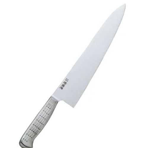 商品のご紹介 肉類、魚介類、野菜、果物、パン類など食品別に使用できる(使い分けが容易)ので、衛生管理がしやすくなります。 タイプ: 牛刀包丁 サイズ: 【刃渡り】270mm【全長】405mm【背厚】2.5mm 重 量: 約200g 素 材: 【刀身】モリブデンバナジウム鋼【ハンドル】ノバロンAGZ330(銀系無機抗菌剤)入りポリプロピレン樹脂 特 徴: 【本研刃造り】砥石による本格的な刃付けを施し、鋭い切れ味を長く持続させます。【サブゼロ処理】1050℃で焼き入れ後に、-73℃以下に冷却す... 10,443円 税込 送料別 カードOK 調理道具専門店 エモーノ ![]() | ||