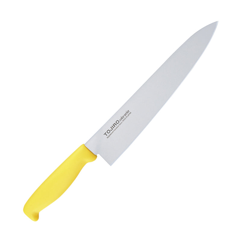 商品の仕様●全長(mm):335●質量(g):120●カラー:イエロー●背厚(mm):1.9●特長・ハンドルは、耐熱性、耐衝撃性に優れ柔らかい感触で、使い易さを考慮したデザインです。・焼き入れ後に-70℃以下に冷却する特殊な処理をほどこす事により、高い硬度と靱性を与えています。・抜群の切れ味とその持続性を保証します。また研ぎ直しも容易に出来ます。●材質:刃身/大同特殊鋼製モリブデン・バナジウム・ステンレス鋼、ハンドル/ゼラス(オレフィン系エラストマー)耐熱温度:105℃●※御注文の際は、色を御指定ください。●※庖丁の表示サイズは、すべて刃渡り寸法となっております。※商品画像はイメージです。複数掲載写真も、商品は単品販売です。予めご了承下さい。※商品の外観写真は、製造時期により、実物とは細部が異なる場合がございます。予めご了承下さい。※色違い、寸法違いなども商品画像には含まれている事がございますが、全て別売です。ご購入の際は、必ず商品名及び商品の仕様内容をご確認下さい。※原則弊社では、お客様都合(※色違い、寸法違い、イメージ違い等)での返品交換はお断りしております。ご注文の際は、予めご了承下さい。【end-9-0336】 関連商品カラーセレクト 牛刀(両刃)3015-RD21cmレッドカラーセレクト 牛刀(両刃)3015-YE21cmイエローカラーセレクト 牛刀(両刃)3015-GR21cmグリーンカラーセレクト 牛刀(両刃)3015-BL21cmブルーカラーセレクト 牛刀(両刃)3015-BK21cmブラックカラーセレクト 牛刀(両刃)3016-RD24cmレッドカラーセレクト 牛刀(両刃)3016-YE24cmイエローカラーセレクト 牛刀(両刃)3016-GR24cmグリーンカラーセレクト 牛刀(両刃)3016-BL24cmブルーカラーセレクト 牛刀(両刃)3016-BK24cmブラック 3,619円 税込 送料別 カードOK 開業プロ メイチョー ![]() | ||