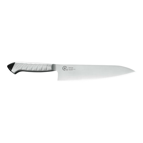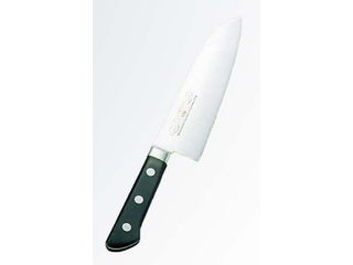 ※受注生産のため仕上りまで10日~2週間ほどかかる場合があります。 【 本刃付け 】 砥石による本格的な刃付けを施し、鋭い切れ味を長く持続させます。 【 本研刃造り 】 プロの技術者により、本刃付けする前に研ぎなおしを容易にするため、水砥の荒砥・中砥を使用し、刃基を研ぎだしてあります。 【 一体構造 】 刀身とハンドルはすき間のない一体構造で非常に衛生的です。 【 モナカハンドル 】 ハンドル部を空洞にし、軽くていつまでも美観を保つ「ステンレスモナカ構造」を採用。 また、18-8ステンレス鋼を使用し水・洗剤等の高圧・高温殺菌洗浄を可能にした衛生的なハンドルです。 ※次亜塩素酸・塩素等での殺菌は使用しないでください。 【 3層鋼 】 サビにくい13クロームステンレスに、刃物鋼では最高級のモリブデン・バナジウム鋼を刃部に割込み、 最新の設備と高度な技術で造り上げられた製品ですので、使い始めから本格的な切れ味のよさが得られます。 【 材質 】 刀身/モリブデン・バナジウム鋼 割込 ハンドル/18-8ステンレス鋼 【 牛刀 】 TK-1102 牛刀 300mm購入はこちら。 TK-1103 牛刀 270mm購入はこちら。 TK-1104 牛刀 240mm購入はこちら。 TK-1105 牛刀 210mm購入はこちら。 TK-1106 牛刀 180mm購入はこちら。 16,690円 税込 送料込 カードOK 瀧商店 ![]() | ||