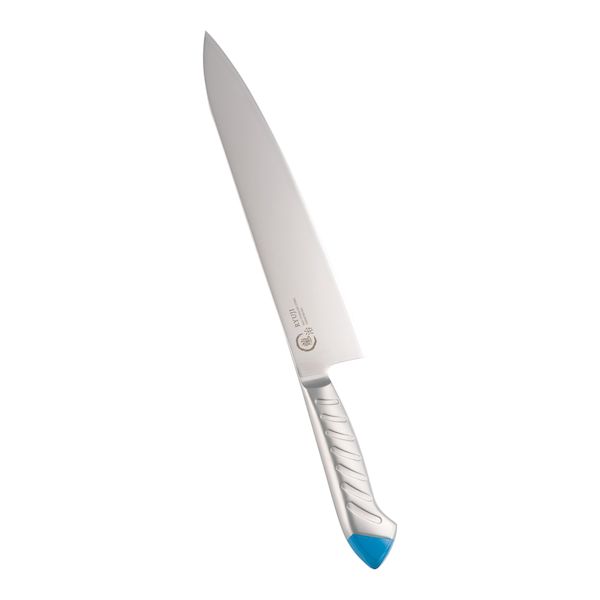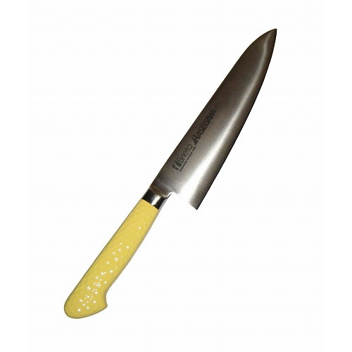 【刃渡】21cm 【全長】345mm 【g】150g 【背厚】2.5 〈特 長〉 刀身 ●医療用メス素材であるモリブデンバナジウム鋼使用。錆びにくい、粘りがある、欠けにくい等厳しい要求に答えます。 ハンドル ●現場の声にもとづいた握りやすく、疲れない、滑りにくい、耐久性抜群のハンドル。(エラストマー樹脂使用) ●熱湯殺菌(100℃/20分)にも対応。(耐熱温度115℃・ハンドル部) ●インサート成型により口元からの水、雑菌の侵入を防ぎます。 ※ノバロン銀系無機抗菌剤配合 5,940円 税込 送料込 カードOK PRO-SHOP YASUKICHI ![]() | ||