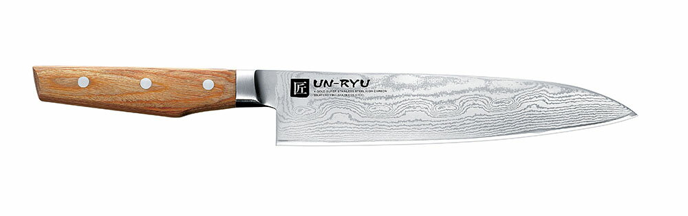 ステンレス口金付きで丈夫。 柄を密封し、水分をシャットアウトサビにくい構造です。丈夫な本通し3本鋲及び2本鋲止め。日本刀のように軟質と硬質のステンレスを交互に鍛造することにより 外観に美しい霞模様を作り出しています。 刃物鋼には、コバルトを配合した【V金10号】を使用、硬度が高く永切れします。 更に職人が手仕上げで研いだ本格的な刃付けが施してあります。 商品情報 材質刃部:33層スウェーデン鋼、ハンドル:強化積層合板(背割本通し三本鋲)サイズ刃渡り:210mm、 全長:350mm UNR... 12,877円 税込 送料別 カードOK エムスタ ![]() | ||