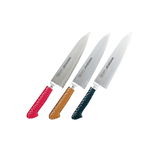 商品の仕様●関連ワード【 三徳包丁 洋包丁 包丁 ペティナイフ フルーツナイフ 筋引包丁 牛刀 カラー包丁 薄刃包丁 菜切包丁】●mm:210※商品画像はイメージです。複数掲載写真も、商品は単品販売です。予めご了承下さい。※商品の外観写真は、製造時期により、実物とは細部が異なる場合がございます。予めご了承下さい。※色違い、寸法違いなども商品画像には含まれている事がございますが、全て別売です。ご購入の際は、必ず商品名及び商品の仕様内容をご確認下さい。※原則弊社では、お客様都合(※色違い、寸法違い、イメージ違い等)での返品交換はお断りしております。ご注文の際は、予めご了承下さい。【kisi-13-0125】ホワイト ピンク イエロー グリーン ブルーリベット型差し込み型一体型柄の部分に抗菌剤配合塗料を焼付塗装しているため、さらに衛生的です。刃部と柄を溶接一体化してありますので、リベット型や差込包丁のように、汚水や汚れのしみ込む恐れがなく、大変衛生的です。不錆スウェーデン鋼を使用しているため、切れ味抜群。重心を手元側に寄せているため、作業性軽減。ハセガワの抗菌カラー包丁は、刃先からグリップに至るまで、ステンレス一体型のため、他の木柄やプラスチック柄の包丁の様に柄部と金属との膨張率の差により隙間が生じることも無くとても衛生的です。※次亜塩素酸水への長時間の浸け置きは、結合部に汚れが 刃先腐食の原因になります。溜まり不衛生ステンレスカラー包丁は刃付けが7:3になっております。刃を砥ぐ際には同等の配分になるよう、気を付けて砥いでください。ハセガワ 抗菌カラー包丁兼元 INOXカラー包丁 POM柄4 牛刀 [ CHJA-01 ] 05 菜切 [ CHJA-02 ]6 ぺティーナイフ [ CHJA-03 ]さびにくいモリブデンステンレス刃物鋼を使用。切れ味とお手入れの簡単さに、料理の腕が冴えわたります。1 牛刀 [ CHSB-01 ]2 ペティナイフ [ CHSB-02 ]3 三徳 [ CHSB-03 ] 12,882円 税込 送料込 カードOK 厨房卸問屋 名調 ![]() | ||