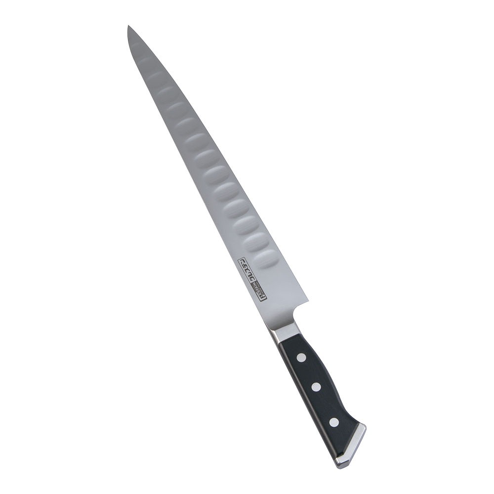 ●肉類、魚貝類、野菜、果実、パン類、加工済食品など食品別に使い分けて、衛生管理UP。●本研刃造り。プロの技術者により、本刃付けする前に研ぎなおしを容易にするため、水砥の荒砥・中砥を使用し、刃基を研ぎだしてあります。●本刃付け。砥石による本格的な刃付けを施し、鋭い切れ味を長く持続させます。●サブゼロ処理。1050度で焼き入れ後に、?73度以下に冷却する特別な処理により高い硬度と靭性を与え、切れ味を一段と高めてあります。●抗菌効果。抗菌剤が配合されたプラスチック製ハンドル。●両刃●背厚:2.2mm●ハンドル耐熱温度:115度【外寸 (mm)】 全長:433【重量】 170g【材質】 モリブデン・バナジウム鋼 エラストマー樹脂 ノバロンAGZ330(銀系無機抗菌剤) 背:2.2※ ご注文をいただきましたのち、メーカーの在庫を確保・取り寄せする商品となります。近年の社会情勢により、メーカー側のやむを得ない事情で生産待ち・生産終了となっているケースがございます。ご不便おかけしますことお詫びします。ご注文前に在庫・納期状況または関連商品についてお問い合わせのほどご検討をよろしくお願いします。 12,430円 税込 送料別 カードOK 厨房の達人 ![]() | ||