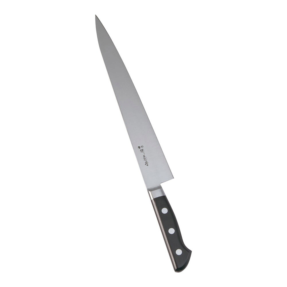 【メーカー名】 ●片岡製作所 【特長】 ●砥石による本格的な刃付けを施し、鋭い切れ味を長く持続させます。 ●プロの技術者により、本刃付けする前に研ぎなおしを容易にするため、水砥の荒砥・中砥を使用し、刃基を研ぎだしてあります。 ●抗菌剤が配合されたプラスチック製ハンドル。 【仕様】 ●材質:刀身:モリブデンバナジウム鋼 / ハンドル:ノバロンAGZ330(銀系無機抗菌剤)入りエラストマー樹脂 【関連商品】 片岡製作所 MCSK210M マスターコック 筋引 210mm 5,118円 税込 送料別 カードOK KanamonoYaSan KYS ![]() | ||