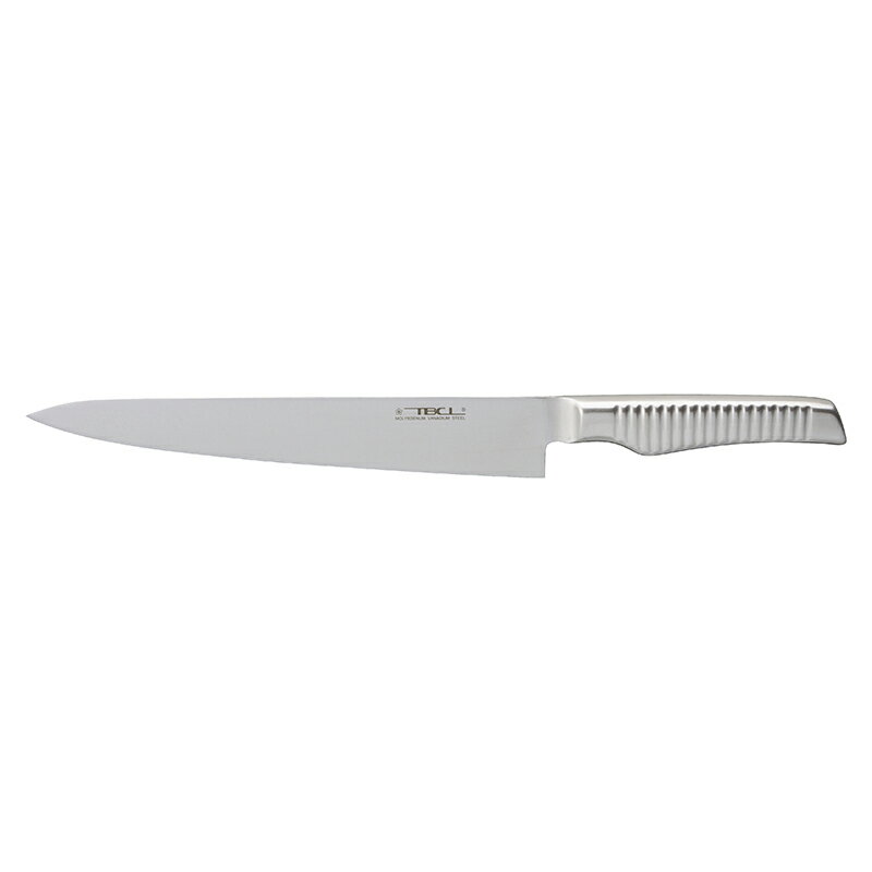 日本の洋食器の発祥・燕物産株式会社は、明治44年以来100年以上の歴史を持つカトラリーの老舗。「TBCL」は社名の頭文字をとった登録商標です。この度、包丁を生産するにあたり、18-8ステンレスハンドルは燕物産が製造し、刃先は岐阜県関市の関兼次刃物(善定藤原兼次に由来)が製造した一体成型オーステンレス包丁です。金属洋食器の製造技術と日本刀鍛錬の伝統技術とを活かして最高の切れ味と使い良さを追求した包丁です。オールステンレスの包丁は、洗いやすく汚れが溜まらず衛生的です。刃は側面が蛤の貝殻のように曲線になった「蛤刃」で身離れの良さと長切れが特徴です。刀身をハンドルで挟み込み溶接したため丈夫で折れにくく長持ちします。斬新なデザインで握りやすく滑りにくい形状です。 食器洗浄機対応。贈り物にも喜ばれます。 ◆製品仕様/18-8ステンレス最中柄 ◆素材/ハンドル:18-8ステンレス 刀身:モリブデン・バナジウム ◆商品サイズ/筋引包丁;刃渡り24cm 全長:37cm ◆日本製 13,560円 税込 送料別 カードOK e雑貨屋楽天市場店 ![]() | ||