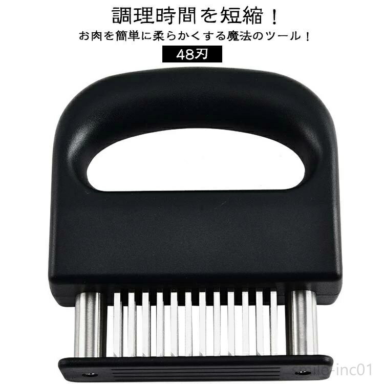調理時間を短縮!お肉を簡単に柔らかくする魔法のツール!ステンレス刃とABSプラスチックを採用し、耐久性に優れている。筋切り器を使うと肉が細かく切れ、調味料が染み込みやすいので、確かに肉が柔らかくジューシーになる。特製の48本のステンレス刃が、風味、形を損なうことなくジューシーなお肉に大変身!。グリップタイプなので、しっかりと握ることができるので扱いやすく便利です。刃先のカバー部分は取り外すことが出来るので刃のお手入れも簡単です。牛、豚、羊、鶏等あらゆ... 1,949円 税込 送料込 カードOK スマイル・インク ![]() | ||