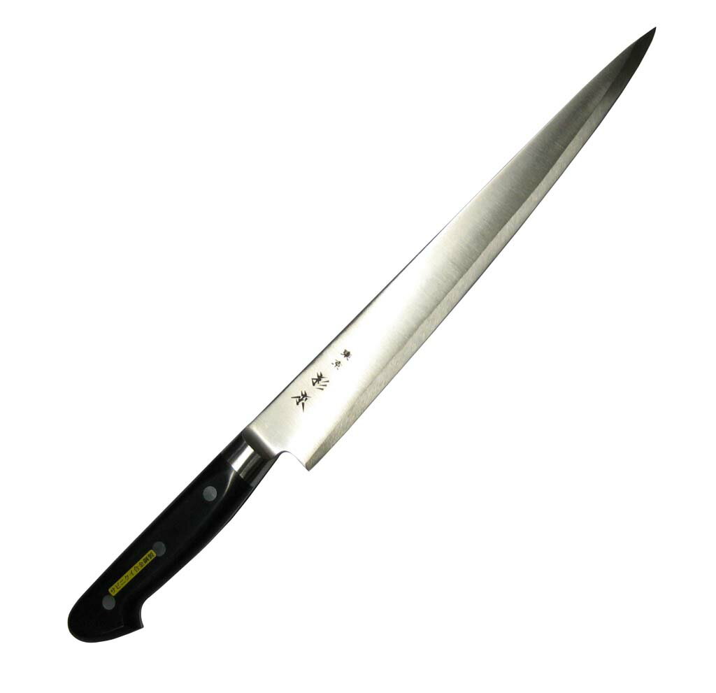 27cm 全長380mm 190g 背厚2.4mmカーボン量1.0以上含有のモリブデンバナジウム鋼は高硬度で耐磨耗性に優れシャープな切れ味が持続します。またハンドルはジュラコンを採用し、強度・弾性などに優れ劣化しにくく食器洗浄機にも対応し抗菌剤配合で衛生面においても優れています。AMSJ202 26,422円 税込 送料別 カードOK エムスタ ![]() | ||