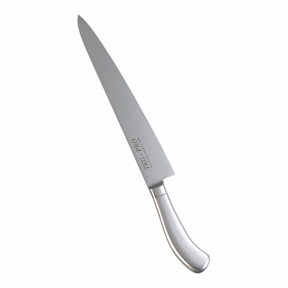 !!メーカー取り寄せ品のため発送まで約2-5営業日(土日祝除く)かかります。予めご了承の上ご注文をお願いいたします。また、商品が欠品中の場合もございますのでお急ぎの場合はご注文前に在庫のご確認をお願いいたします。 ●全長(mm):402 ●質量(g):165 ●背厚(mm):2.5 ●TKG-PRO(プロ):業務用料理庖丁刀身にモリブデンバナジウム鋼を使用しハイレベルでの技術を駆使した理想の庖丁です。耐蝕性、耐磨耗性、耐熱・耐寒性に優れ、切れ味の持続性など品質を徹底追求して、高度な機能を実現しました。ハンドルは、握りやすく手にフィットし、使い易さを取り入れた庖丁です。●材質:刀身モリブデンバナジウム鋼(ゼロクリア加工):ハンドル18-8ステンレス、フロスティー仕上〈フロスティー仕上の特長〉●光沢のある、独特なサテン仕上ハンドル一旦、鏡面のようなミラー仕上をしたあと、高圧でガラス粉を吹きつけ、表面に細かい凸凹をつける事により独特な光沢のあるサテン仕上になります。指紋が目立ちにくく、品のある落ち着いたイメージの演出をかもし出してくれます。※庖丁の表示サイズは、すべて刃渡り寸法となっております。 ■材質:モリブデンバナジウム鋼 ■メーカー希望小売価格はメーカーカタログに基づいて掲載しています 13,585円 税込 送料別 カードOK 食器の通販 KYOEI ![]() | ||