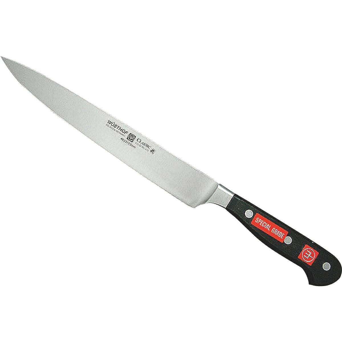 30cm 全長420mm 230g 背厚2.5mm高い信頼性と実績を持った大同特殊鋼ハイカーボンステンレスIK-8材(クローム・モリブデン・バナジウムを含有した特殊鋼)と熟練した職人の技術によって作り出されたプロの為の高級庖丁です。ASB5930 10,967円 税込 送料別 カードOK エムスタ ![]() | ||