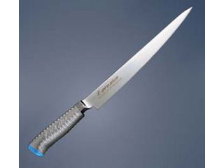 【 本刃付け 】 砥石による本格的な刃付けを施し、鋭い切れ味を長く持続させます。 【 本研刃造り 】 プロの技術者により、本刃付けする前に研ぎなおしを容易にするため、水砥の荒砥・中砥を使用し、刃基を研ぎだしてあります。 【 サブゼロ処理 】 1050℃で焼き入れ後に、−73℃以下に冷却する特別な処理により高い硬度と靭性を与え、切れ味を一段と高めてあります。 【 一体構造 】 刀身とハンドルはすき間のない一体構造で非常に衛生的です。 【 モナカハンドル 】 ハンドル部を空洞にし、軽くていつまでも美観を保つ「ステンレスモナカ構造」を採用。 また、18-8ステンレス鋼を使用し水・薬品等の高圧・高温殺菌洗浄を可能にした衛生的なハンドルです。 ※次亜塩素酸・塩素等での殺菌は使用しないでください。 【 厚口タイプ、片刃、両刃タイプ 】 【 材質 】 刀身/モリブデン・バナジウム鋼 ハンドル/18-8ステンレス鋼 。 【 筋引 】 M1127 筋引 300mm購入はこちら。 M1112 筋引 270mm購入はこちら。 M1113 筋引 240mm購入はこちら。 M1124 筋引 210mm購入はこちら。 10,270円 税込 送料込 カードOK 瀧商店 ![]() | ||