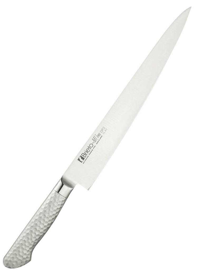 《特長》 超定番 白三鋼を使った打刃ですので研ぎやすく料理人に広く愛用されています。東一誠本職用和包丁柳刃 240mm 商品コードサイズ・規格001041-001240mm 【関連商品】東一誠本職用和包丁 出刃商品コード刃渡り001043-001105mm001043-002120mm001043-003135mm001043-004150mm001043-005165mm001043-006180mm001043-007195mm001043-008210mm225mm001043-010240mm001043-011270mm001043-012300mm東一誠本職用和包丁柳刃商品コード刃渡り210mm001041-001240mm270mm001041-003300mm001041-004330mm001041-005360mm東一誠本職用和包丁 蛸引商品コード刃渡り001042-001240mm001042-002270mm001042-003300mm001042-004330mm001042-005360mm東一誠本職用和包丁 薄刃商品コード刃渡り001044-001180mm001044-002195mm001044-003210mm001044-004240mm東一誠本職用和包丁 鎌型薄刃商品コード刃渡り001045-001180mm001045-002195mm001045-003210mm001045-004225mm240mm東一誠本職用和包丁 寿司切商品コード刃渡り240mm東一誠本職用和包丁 江戸さき商品コード刃渡り120mm001047-002150mm001047-003180mm210mm240mm東一誠本職用和包丁 勝鵬 菜切商品コード 刃渡り021003-001箱入 165mm021003-002箱なし 165mm東一誠本職用和包丁 正次作 三枚打菜切商品コード刃渡り021002-003165mm180mmスエーデン鋼の高純度ピュアステンレス特殊鋼を使用し、ミソノの古い 伝統と新しい技術の複合から生まれたステンレス鋼の最高峰。ミソノ UX10 筋引 No.722 商品コードサイズ・規格070261-002No.722 270mm 400mm 190g 43,780円 税込 送料込 カードOK 佐勘金物店 ![]() | ||