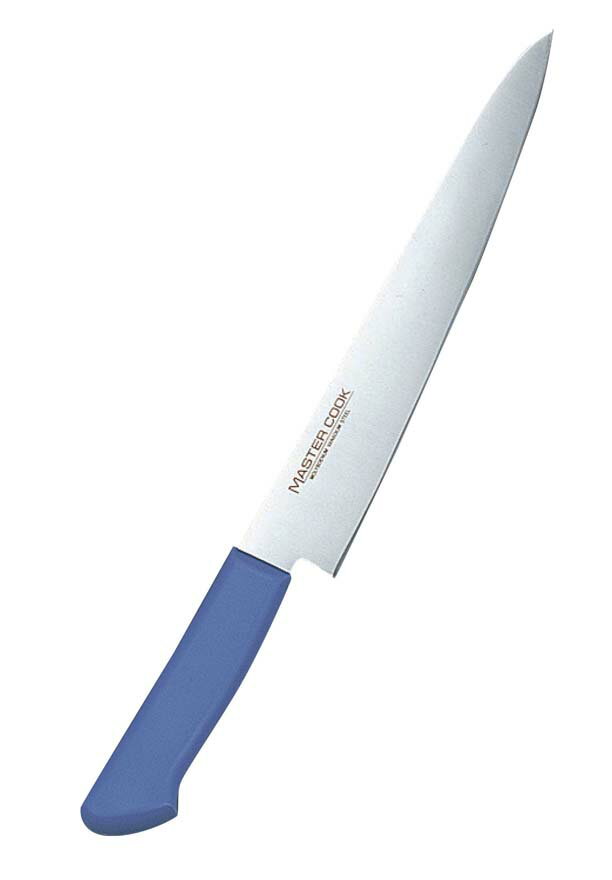 ◆SALE◆包丁全品値下げ中!! 多彩なカラーバリエーションハンドルのカラーは6色あり、肉類、魚貝類、野菜、果実、パン類、加工済食品など食品別に利用できるので衛生管理ができます。『マスターコック』シリーズの包丁一覧はこちらから★●抗菌加工された商品です。■材質:刀身/モリブデン・バナジウム鋼、ハンドル/ノバロンAGZ330(銀系無機抗菌剤入り)、ポリプロピレン樹脂(耐熱温度110℃)■サイズ:刃30cm、全長433mm■質量:170g ※御希望の色を御指定ください。■メーカー希望小売価格はメーカーカタログに基づいて掲載しています切れ味の鋭さと特徴■本研刃造りプロの技術者により、本刃付けする前に研ぎなおしを容易にするため、水砥の荒砥・中砥を使用し、刃基を研ぎだしてあります。■本刃付け砥石による本格的な刃付けを施し、鋭い切れ味を長く持続させます。■サブゼロ処理1050℃で焼き入れ後に、-73℃以下に冷却する特別な処理により高い硬度と靭性を与え、切れ味を一段と高めてあります。■抗菌効果プラスチック製ハンドルに抗菌剤が配合してあり、抗菌効果抜群です。 9,198円 税込 送料別 カードOK 食器の通販 KYOEI ![]() | ||