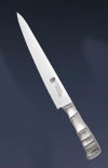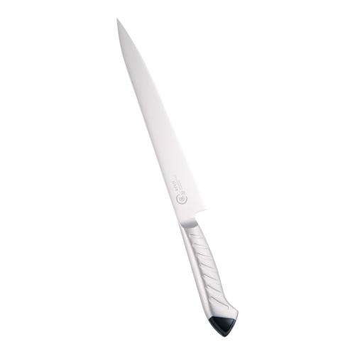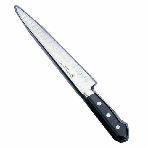 1883. TKG-21-0315-0301 TKG-79-0315-0301 グレステンTタイプ 筋引 724TSK 24cm【業務用包丁】【洋包丁】【キッチンナイフ】【洋食包丁】【GLESTAIN】【業務用】 ※画像は同シリーズ商品です。 サイズをご確認の上ご注文ください。 【全長】367mm 【質量】245g 【背厚】2.0mm ●へこみの部分に空気が入ることにより、刃離れの良さと、軽い切れ味を実現しました。 切断時に側面にかかる密着抵抗を最小にしてあります。庖丁側面に密着し にくいので作業性が良く、切れ味が良く、しかも刃研ぎの面積がせまいため、 非常に研ぎ易い設計です。 店舗用識別コード:TKG-77-0297-0301 TKG-78-0303-0301 24,290円 税込 送料込 カードOK PRO-SHOP YASUKICHI ![]() | ||