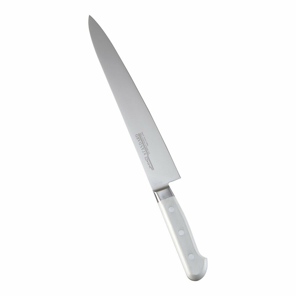 商品の仕様●外寸(mm):刃渡:240 全長:370 ●重量:120g●材質:刃:モリブデン・バナジウム鋼 柄:ノバロンAGZ330(銀系無機抗菌剤)入りエラストマー樹脂 ●製造国:日本■●ハンドルは一体成型でエラストマー樹脂に抗菌剤が入っているため、衛生面に優れています。●刃は水砥で本格的な刃付けを施し、鋭い切れ味が長く持続します。※商品画像はイメージです。複数掲載写真も、商品は単品販売です。予めご了承下さい。※商品の外観写真は、製造時期により、実物... 6,791円 税込 送料込 カードOK 業務用厨房機器の飲食店厨房館 ![]() | ||