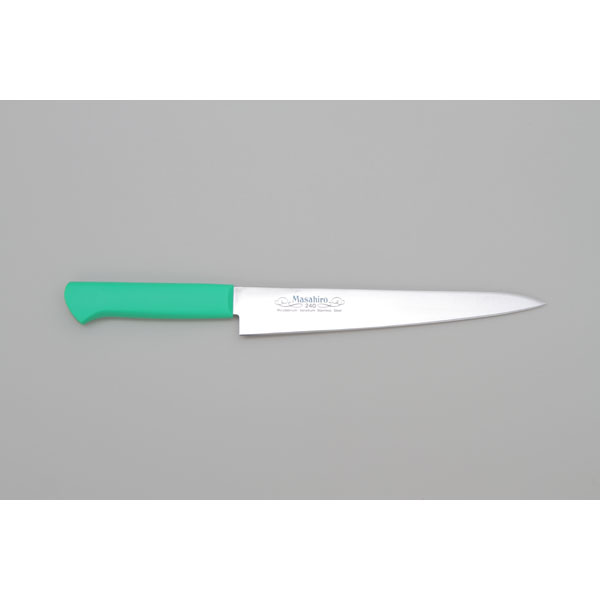 ★有料でお名前入れが可能です。ご注文は→【包丁お名前入れ】のページよりお願い致します。業務用。【MV-P牛刀シリーズ】MVシリーズに衛生的プラスチックハンドルを装着。錆に強く、切れ味の持続性に優れたモリブデン・バナジウム鋼を使用しました。木製ハンドル同様、手に伝わる重量感は実用性に耐久性をプラスした本職用です。【商品詳細】■全長:370mm■刃渡り:240mm■重量:150g【材質】■刀:正広オリジナルのステンレス鋼、MBS-26使用■ハンドル:ポリアミド、エラストマー樹脂(抗菌剤入り)【用途】■大きな肉のブロックを切り分けるのに適しています。【MASAHIRO】刃物で有名な岐阜県関市にあり、創業以来、包丁製造のトップメーカーとして、原材料の改善と共に、加工技術の研究開発に専念し、切れ味、耐久性、耐食性、さらにデザイン、使い良さを追求し、今日に至っています。特に包丁材料は、鋼材メーカーと共同開発を行って生み出した、オリジナルの数種類の材料を使用し、長年高い評価を得ています。【キーワード|マサヒロ/正広/MASAHIRO/岐阜/関市/包丁/キッチン/調理/料理/肉/魚/野菜/刺身】- 8,360円 税込 送料別 カードOK ものうりばPlantz ![]() | ||