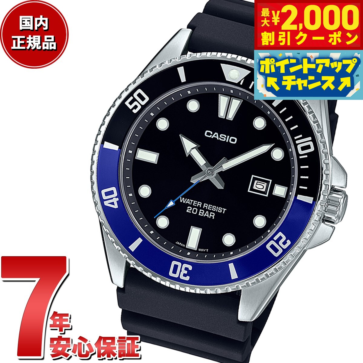 1437. [正規品][送料無料][7年長期無料保証] 【2000円OFFクーポン!&店内ポイント最大55倍!本日限定!】スタンダード STANDARD カシオ CASIO 腕時計 MDV-107-1A2JF マリンスポーツ仕様のメタルアナログモデルです。マリンアクティビティで活用できる20気圧防水、逆回転防止ベゼル、スクリューバックを採用しました。便利な日付表示付きで、スポーティなデザインに仕上げました。商品名スタンダード STANDARD カシオ CASIO 腕時計 MDV-107-1A2JF商品番号MDV-107-1A2JFブランドカシオ スタンダード CASIO STANDARDムーブメントアナログ クォーツ モジュールNo:2784■20気圧防水機能■日付表示■電池寿命約3年精度:±20秒逆回転防止ベゼルスクリューバックバンド装着可能サイズ:145〜215mm風防素材無機ガラスケース素材ステンレススチールケースサイズ49.5×44.2mmケース厚12.1mmバンド素材樹脂バンドバンド留金タイプ美錠腕周り(最大)21.5cm文字盤カラーブラック本体重量92g保証期間メーカー正規保証1年間付属取扱説明書 / 保証書 / 専用BOXその他のサービスメーカー希望小売価格はメーカーサイトに基づいて掲載していますスタンダード STANDARD カシオ CASIO 腕時計 MDV-107-1A2JFマリンスポーツ仕様のメタルアナログモデルです。マリンアクティビティで活用できる20気圧防水、逆回転防止ベゼル、スクリューバックを採用しました。便利な日付表示付きで、スポーティなデザインに仕上げました。 8,800円 税込 送料込 カードOK レビュー27件 neelセレクトショップ ![]() | ||