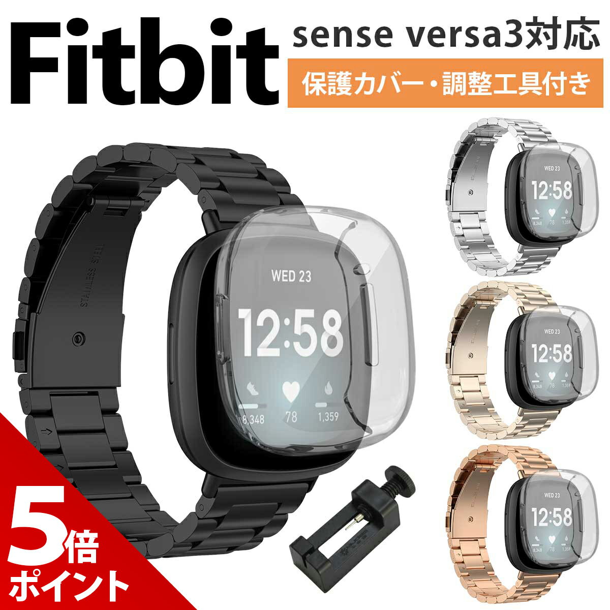 【保護カバーセット】Fitbit Versa3 Fitbit Sense 交換 ベルト ステンレス バンド フィットビット ヴァーサ 3 センス 対応 バンド ベルト 互換品 保護ケース カバー 付属【全国送料無料】 【 最新モデル対応 】Fitbit(フィットビット) sense / Fitbit versa3 対応の交換ベルト・交換バンドです。 【 高級感ある雰囲気】高品質のステンレスを使用し、高級感あふれる雰囲気です。 【 耐久性抜群 】精密の研磨技術で、耐久性も優れています。質感もよく肌馴みの良いバンドです。 【 TPU保護ケース付き 】抜群の透明感+高透過率の保護ケースをセット。軽量で柔軟性のあるTPU素材で、傷や衝撃から保護します。 【 カスタマイズ自由 】ご自分のスタイルに合わせて、簡単にカスタイズできます。様々なシーンでもよく映える交換ベルトです。 ご購入から30日間はメーカー保証付きです。 メーカー希望小売価格はメーカーサイトに基づいて掲載していますd979 【 最新モデル対応 】Fitbit(フィットビット) sense / Fitbit versa3 対応の交換ベルト・交換バンドです。 【 高級感ある雰囲気】高品質のステンレスを使用し、高級感あふれる雰囲気です。 【 耐久性抜群 】精密の研磨技術で、耐久性も優れています。質感もよく肌馴みの良いバンドです。 【 TPU保護ケース付き 】抜群の透明感+高透過率の保護ケースをセット。軽量で柔軟性のあるTPU素材で、傷や衝撃から保護します。 【 カスタマイズ自由 】ご自分のスタイルに合わせて、簡単にカスタイズできます。様々なシーンでもよく映える交換ベルトです。 ・対応モデル Fitbit sense versa 3 ・内容 ベルト、透明保護カバー、ベルト調整用工具 ・サイズ(約) 長さ195mm 幅20mm ・材質 ベルト:ステンレス 保護カバー:TPU ・カラーバリエーション 全4色(ブラック、シルバー、シャンパンゴールド、ピンクゴールド) ※商品写真はできる限り実物の色に近づけるよう調整しておりますが、お客様のお使いのモニター設定、お部屋の照明等により実際の商品と色味が異なる場合がございます。 恐れ入りますが色味が理由によるご返品はお受けしておりませんので、予めご了承ください。 ご注文前にご確認下さい ●よくあるご質問● 1,780円 税込 送料込 カードOK レビュー21件 いいひ 楽天市場店 ![]() | ||