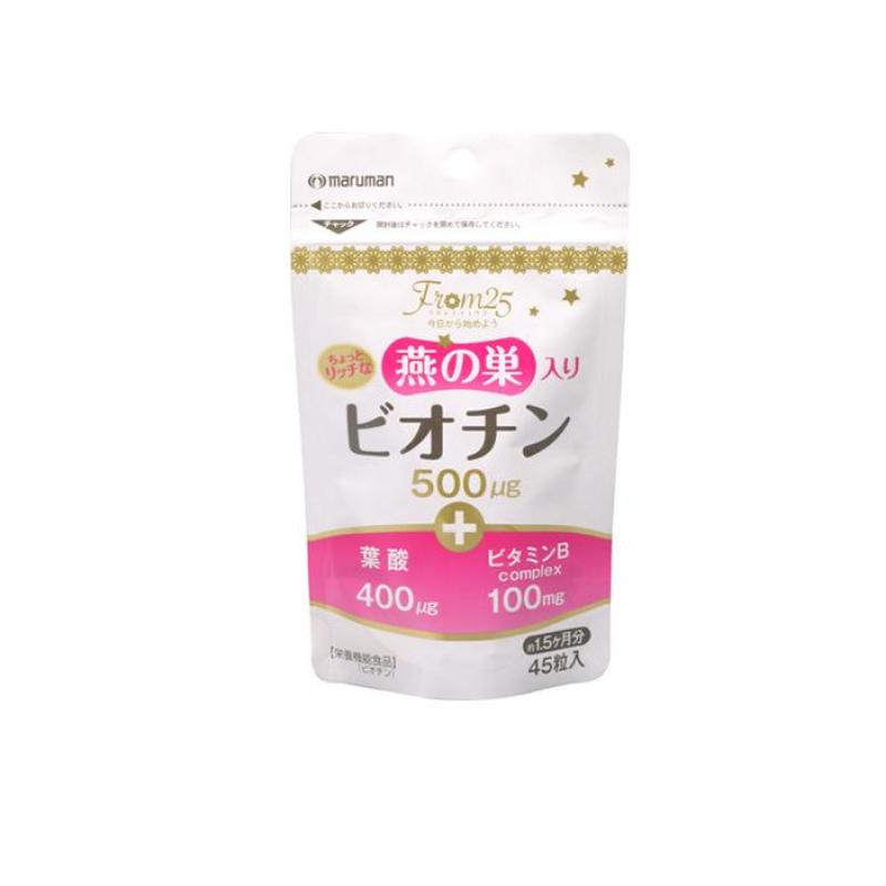 マルマン ビオチン500 45粒入り 商品説明 『マルマン ビオチン500 45粒入り』 肌のターンオーバーに重要な働きをする、燕の巣、ビオチン、葉酸、各種ビタミン類を配合しました。 【マルマン ビオチン500 45粒入り 詳細】 栄養成分表(1粒当たり) ビタミンB1 1.1mg ビタミンB2 1.2mg ナイアシン 17.0mg ビタミンB6 1.6mg 葉酸 400μg ビタミンB12 2.4μg ビオチン 500μg パントテン酸 5.0mg 原材料など 商品名 マルマン ビオチン500 45粒入り 原材料もしくは全成分 還元麦芽糖水飴、燕の巣粉末、結晶セルロース、抽出カロテン(鶏、ゼラチンを含む)、ナイアシン、パントテン酸Ca、 ステアリン酸Ca、二酸化ケイ素、ビタミンB6、ビタミンB2、 ビタミンB1、葉酸、ビタミンB12 内容量 13.5g(300mg×45粒) ご使用方法 栄養機能食品として1日1粒を目安にそのまま水またはぬるま湯と一緒にお召し上がり下さい。 ご使用上の注意 ●本品は自然原料を使用しているため、粒の色が若干変わることがありますが、品質に影響ありません。 ●開封後はなるべく早めにお召し上がり下さい。 ●乳幼児の手の届かないところに保管して下さい。 ●体質や体調によって、まれに体に合わない場合があります。その場合は摂取を中止して下さい。 ●授乳、妊娠中の方、乳幼児および小児は摂取をお控え下さい。 ●療中の方は主治医にご相談下さい。 ●食品によるアレルギーが認められる方は、原材料名をご確認下さい。 広告文責 株式会社プログレシブクルー072-265-0007 区分 健康食品マルマン ビオチン500 45粒入り 718円 税込 送料別 カードOK キュー バザール ![]() | ||